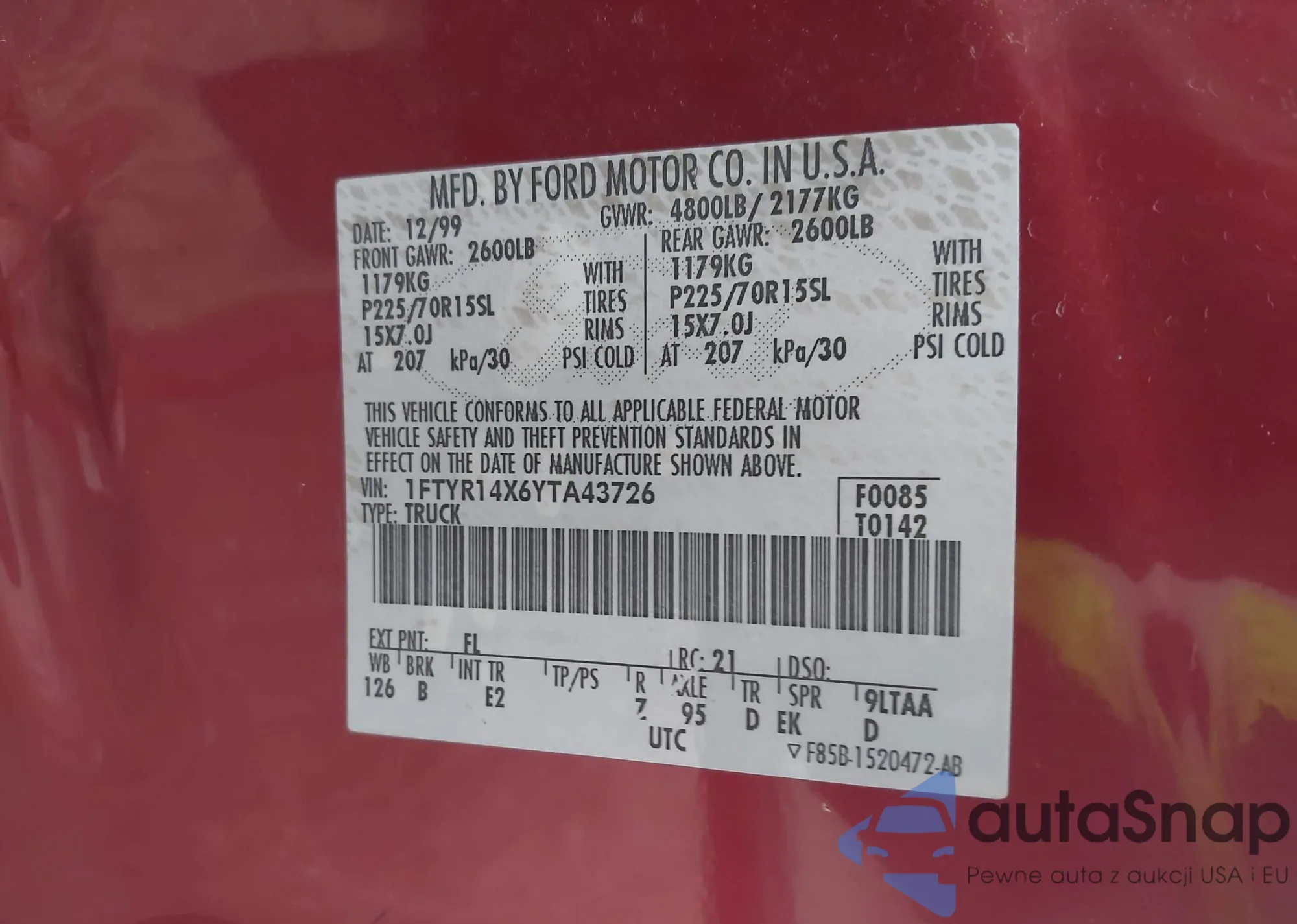 • VIN 1FTYR14X6YTA43726