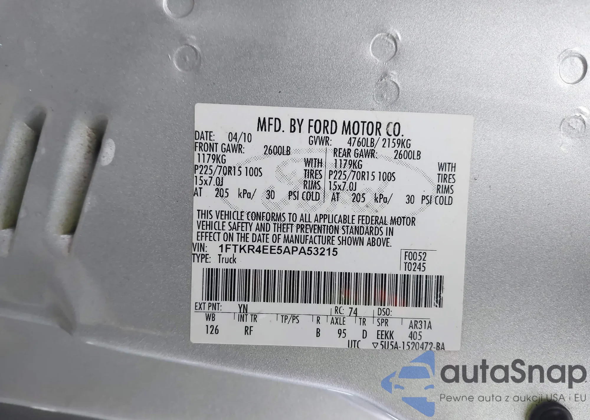 • VIN 1FTKR4EE5APA53215