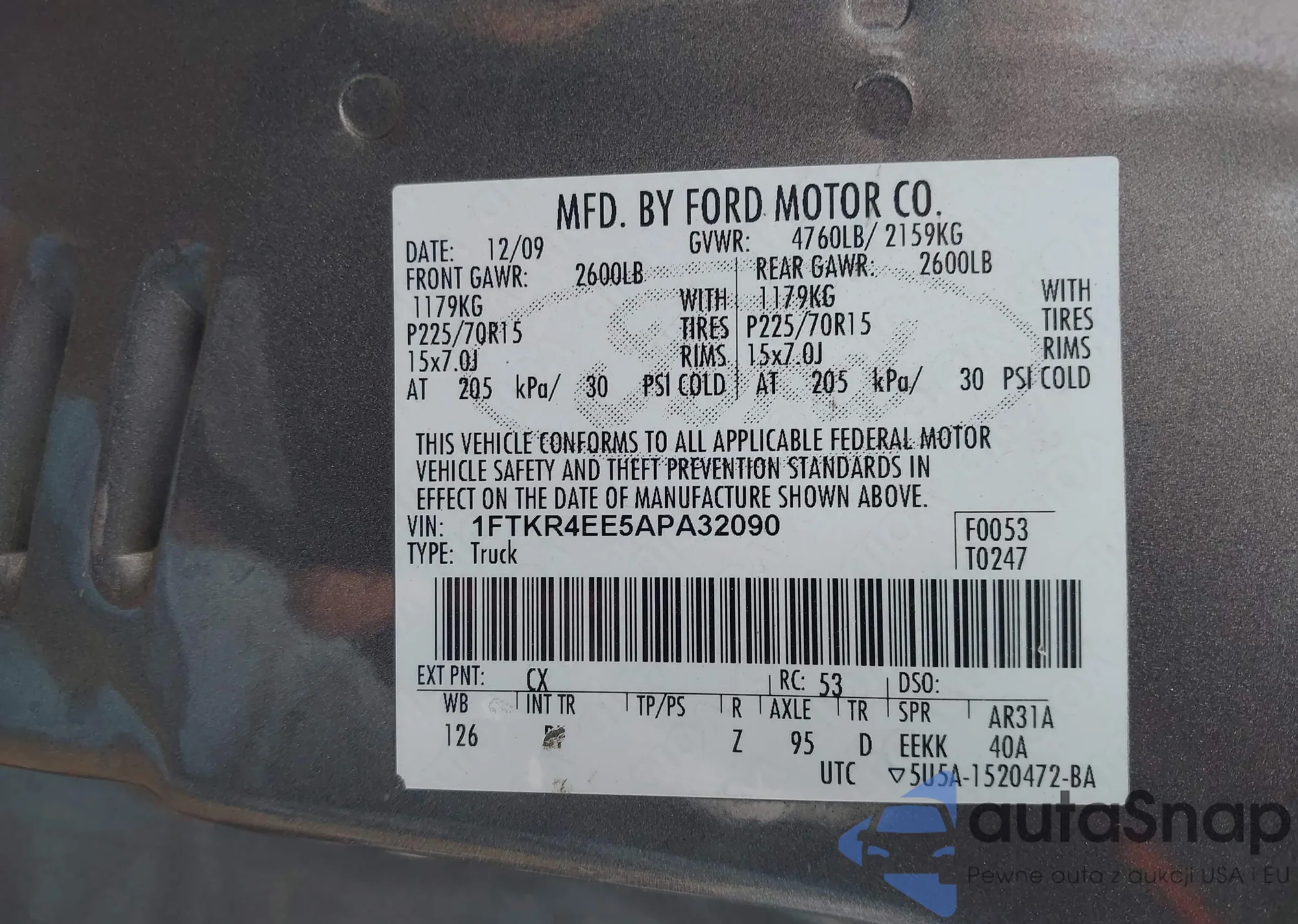 • VIN 1FTKR4EE5APA32090