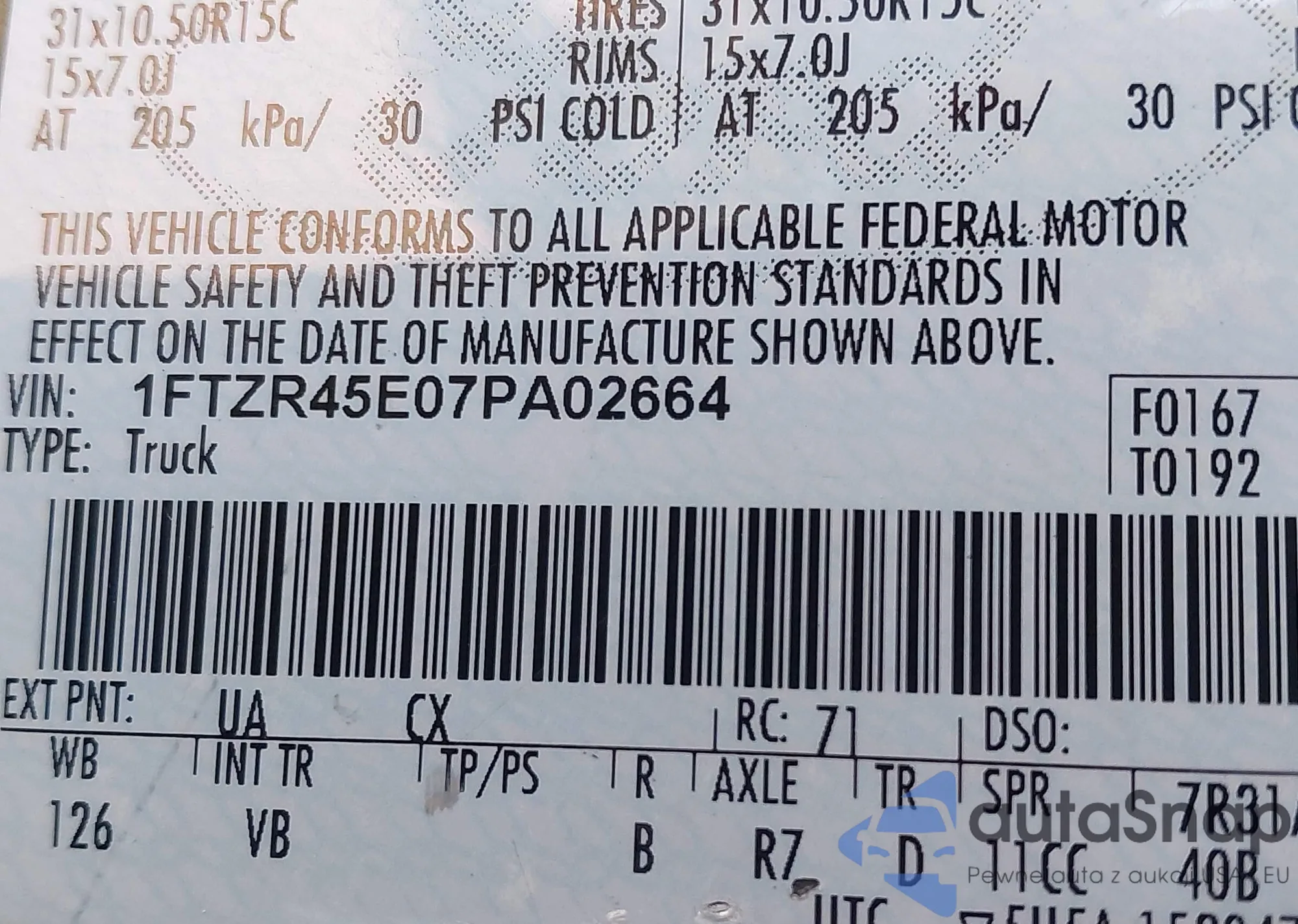 • VIN 1FTZR44U17PA30031