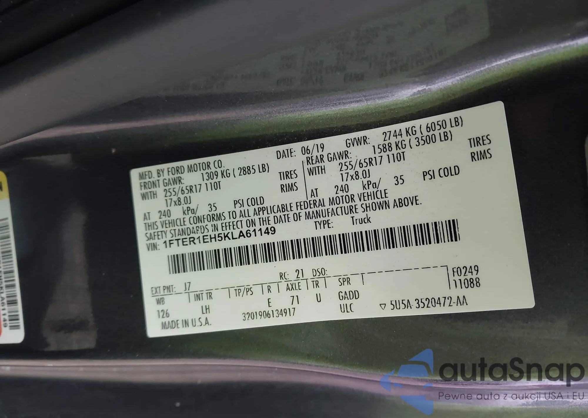 • VIN 1FTER1EH5KLA61149