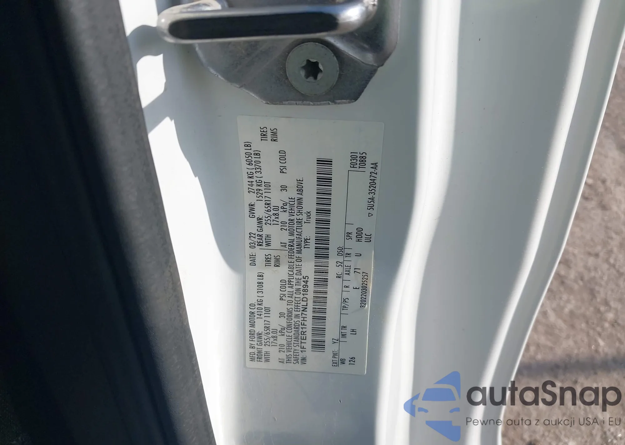 LOT: 44136327 VIN: 1FTER1FH7NLD18945
