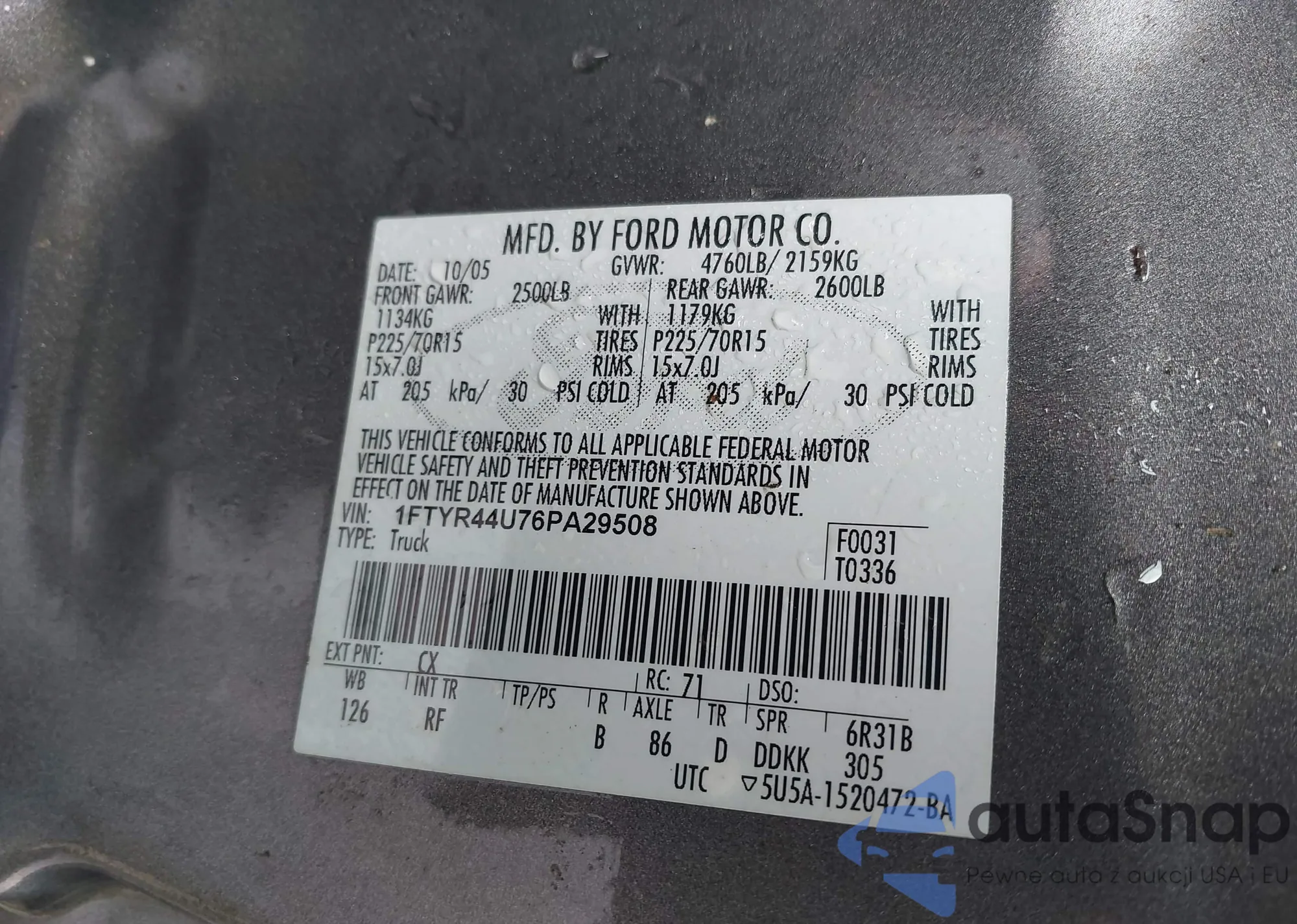 LOT: 41925067 VIN: 1FTYR44U76PA29508