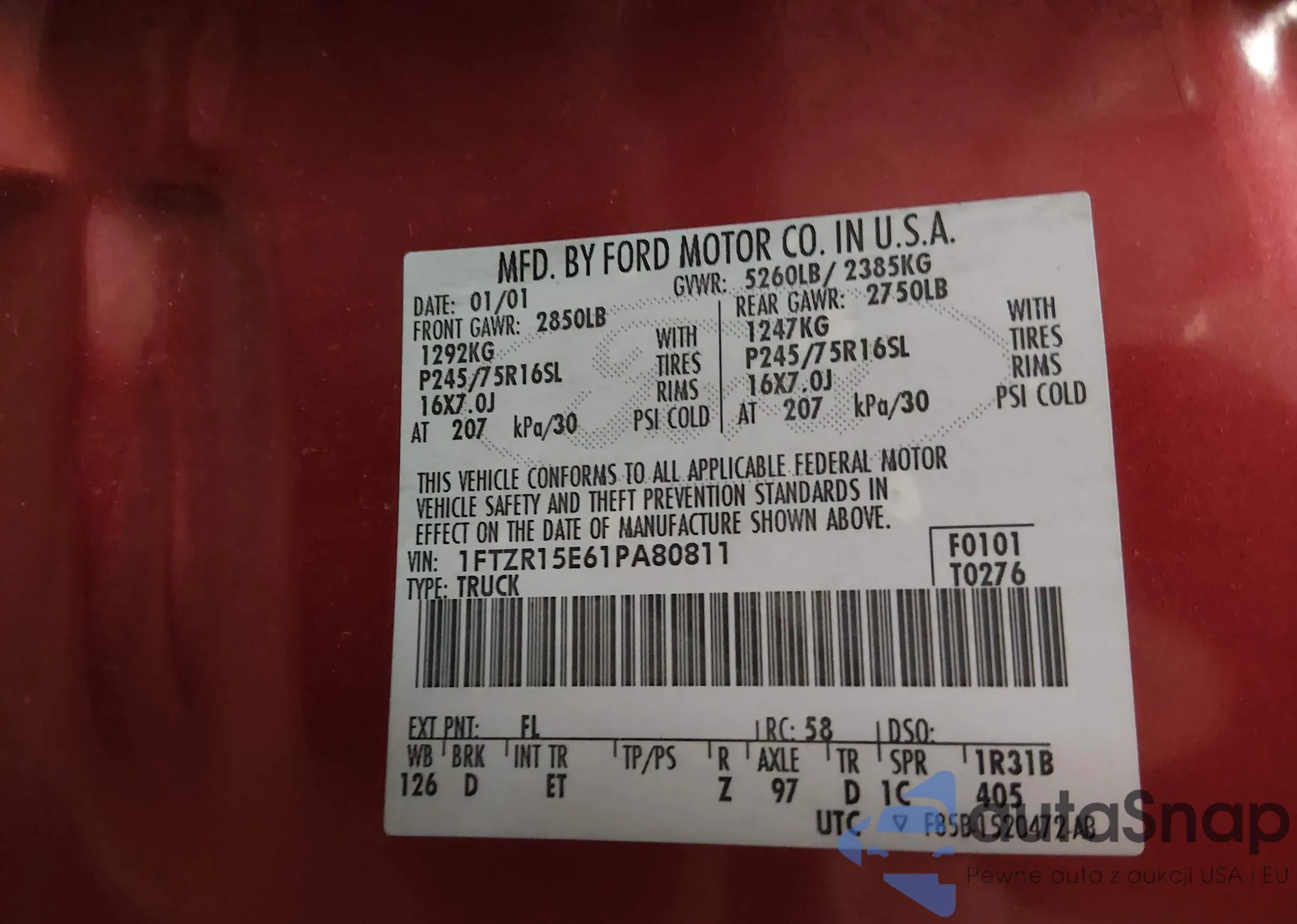 • VIN 1FTZR15E61PA80811