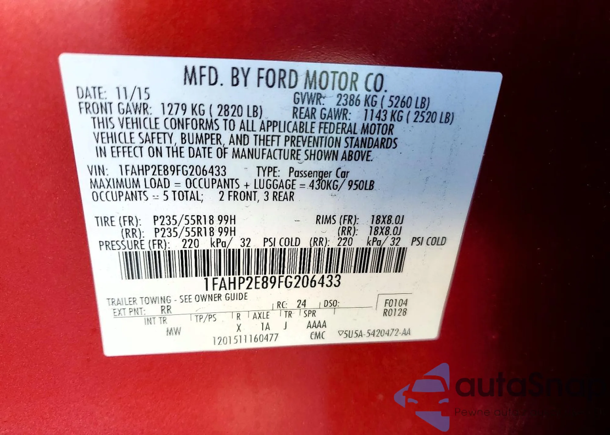 • VIN 1FAHP2E89FG206433