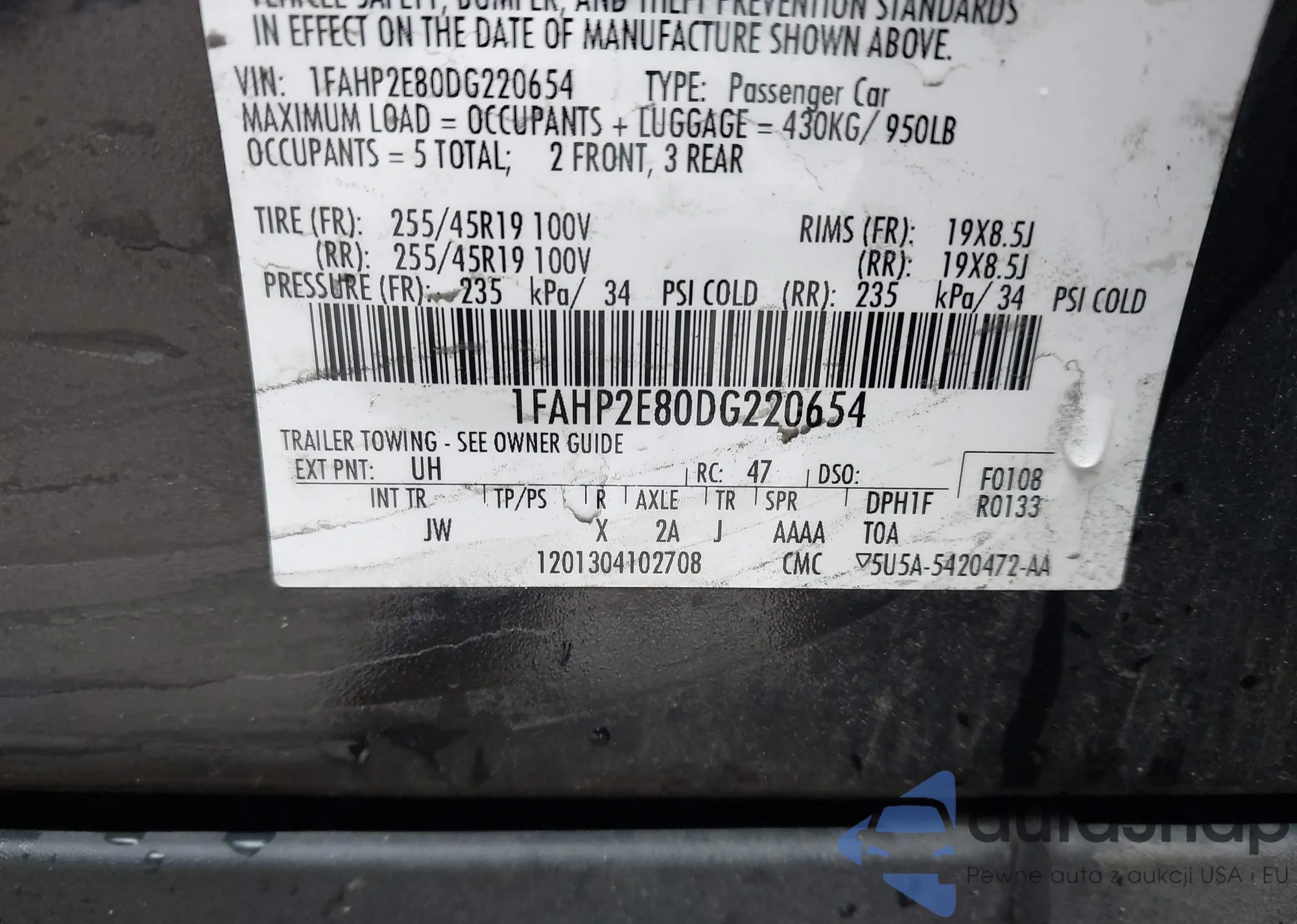 LOT: 44528166 VIN: 1FAHP2E80DG220654