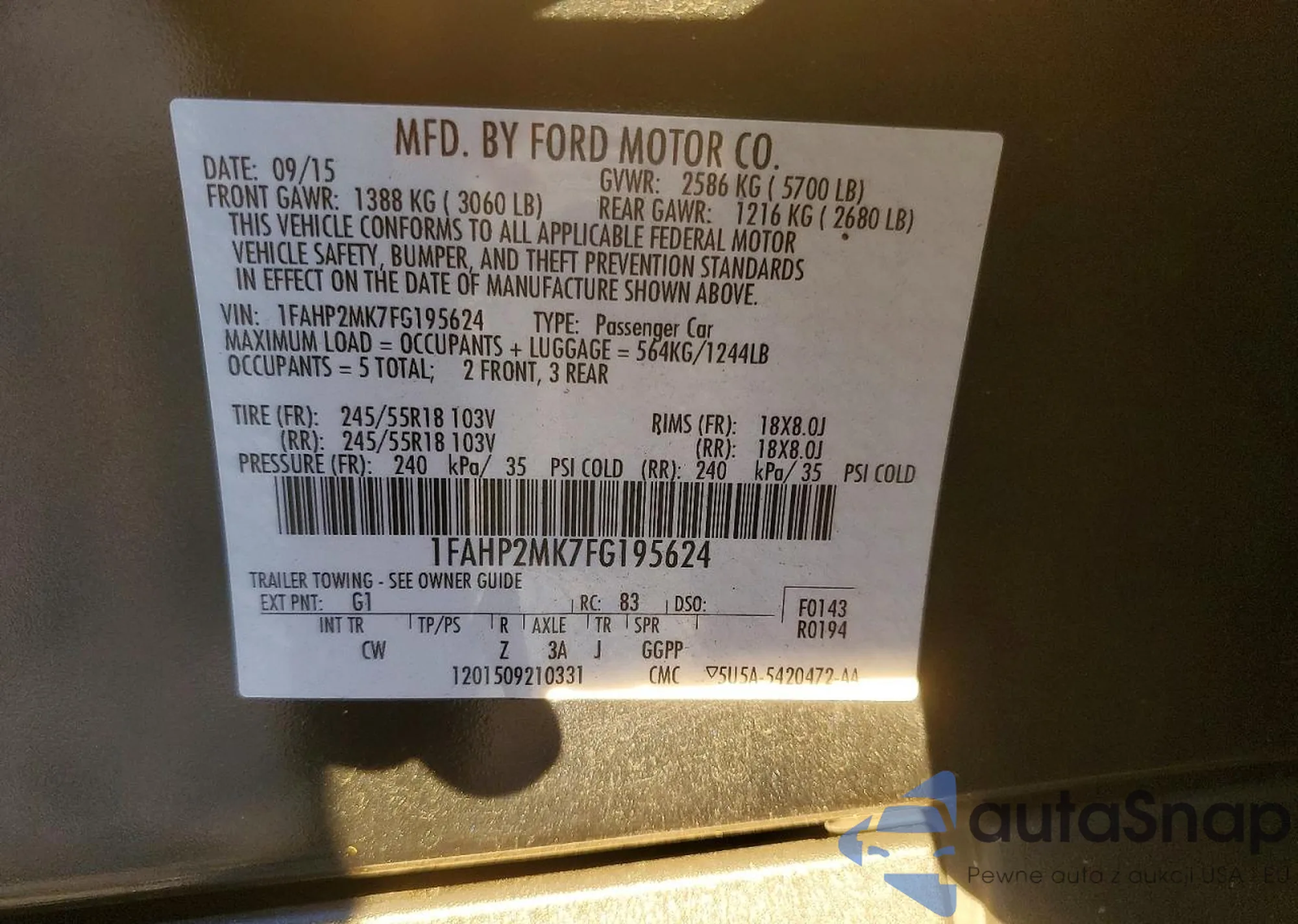 LOT: 43889160 VIN: 1FAHP2KTXFG143755