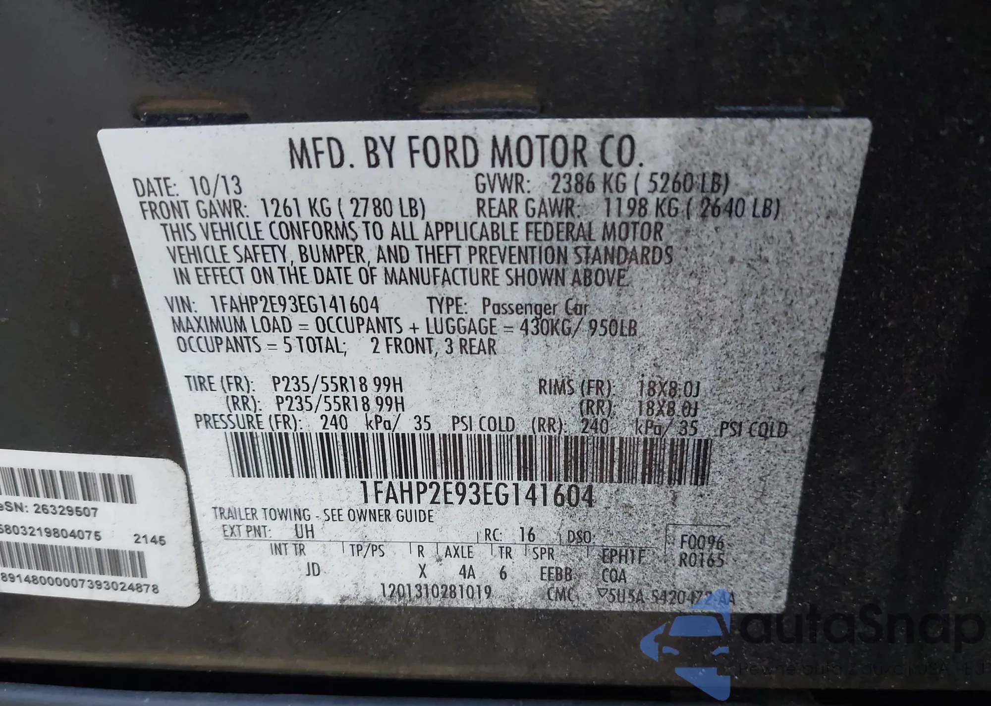 • VIN 1FAHP2E93EG141604