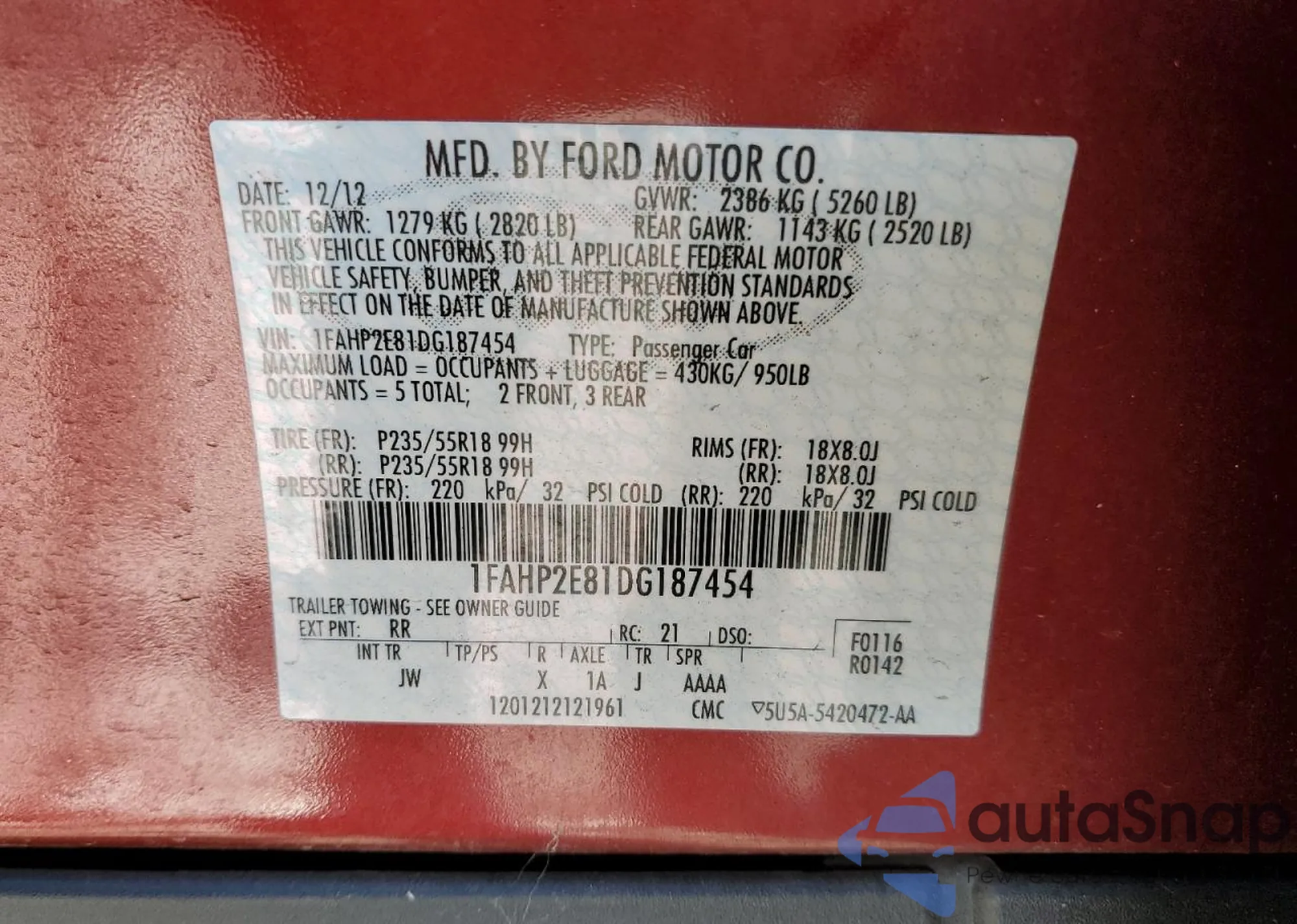 • VIN 1FAHP2E81DG187454