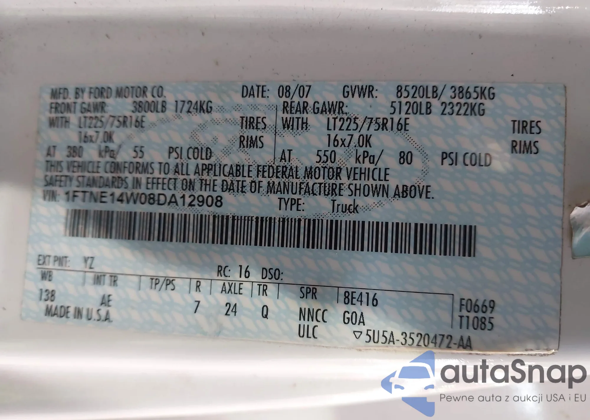 LOT: 40987506 VIN: 1FTNE14W08DA12908