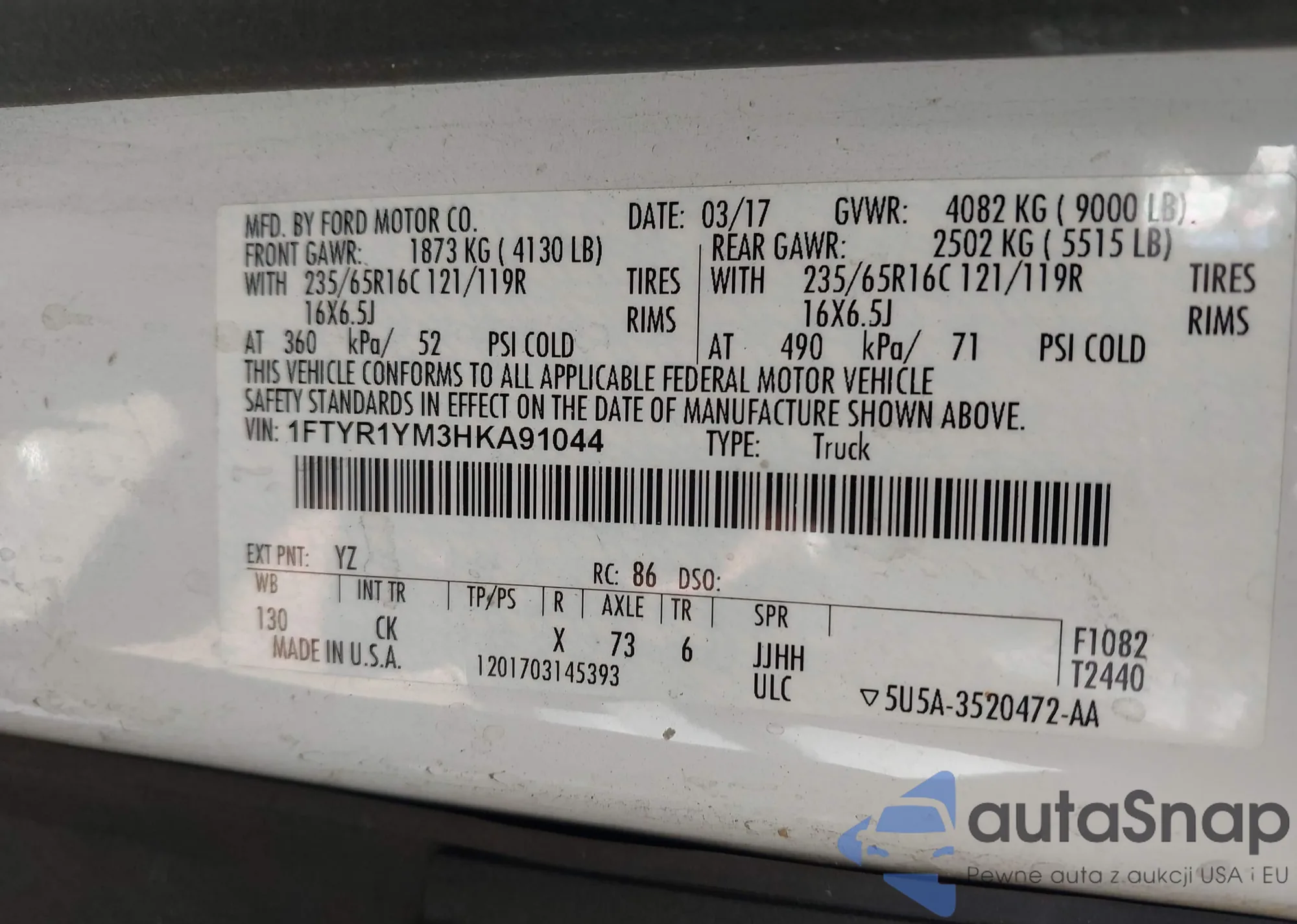 • VIN 1FTYR1YM3HKA91044