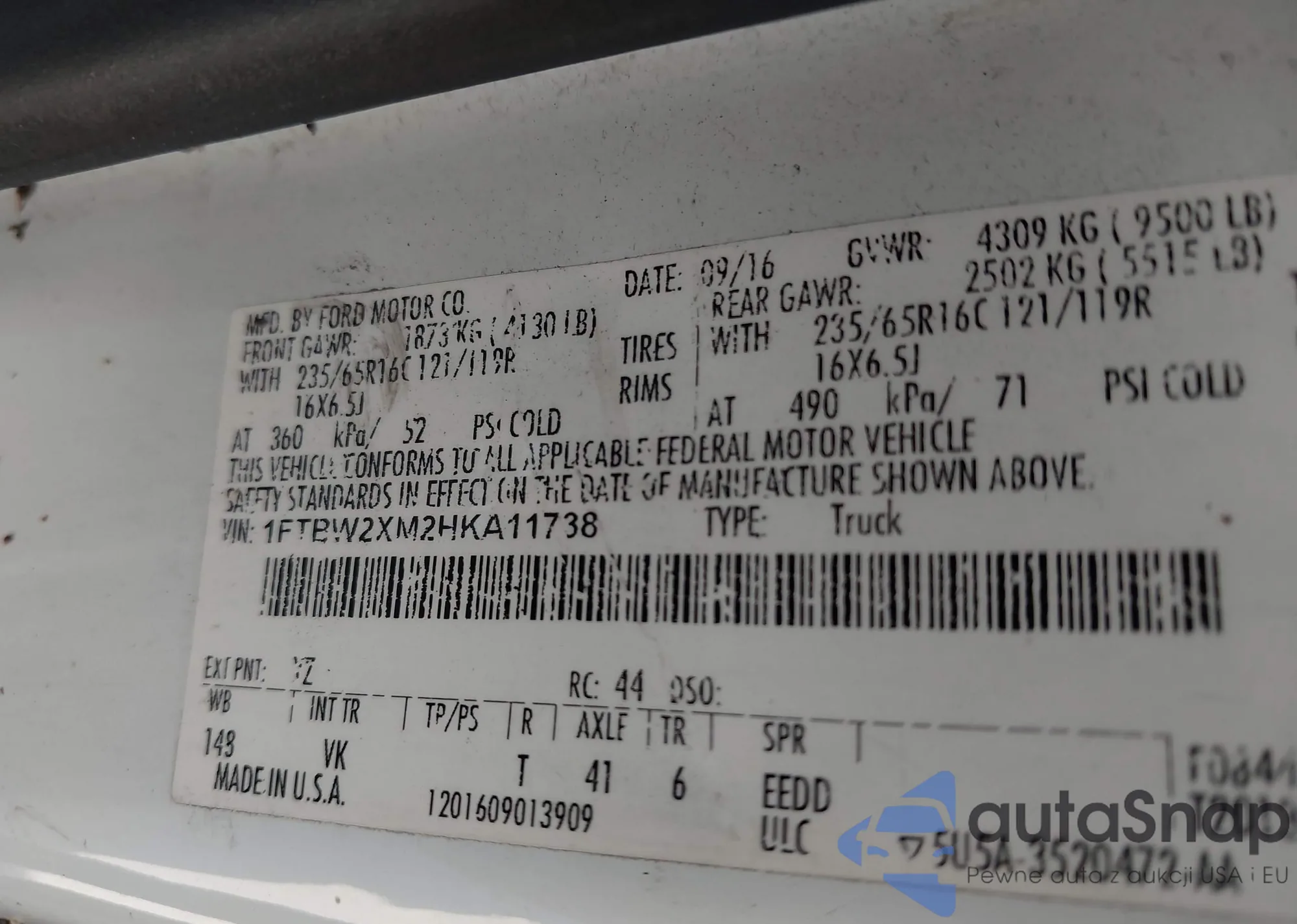 • VIN 1FTBW2XM2HKA11738