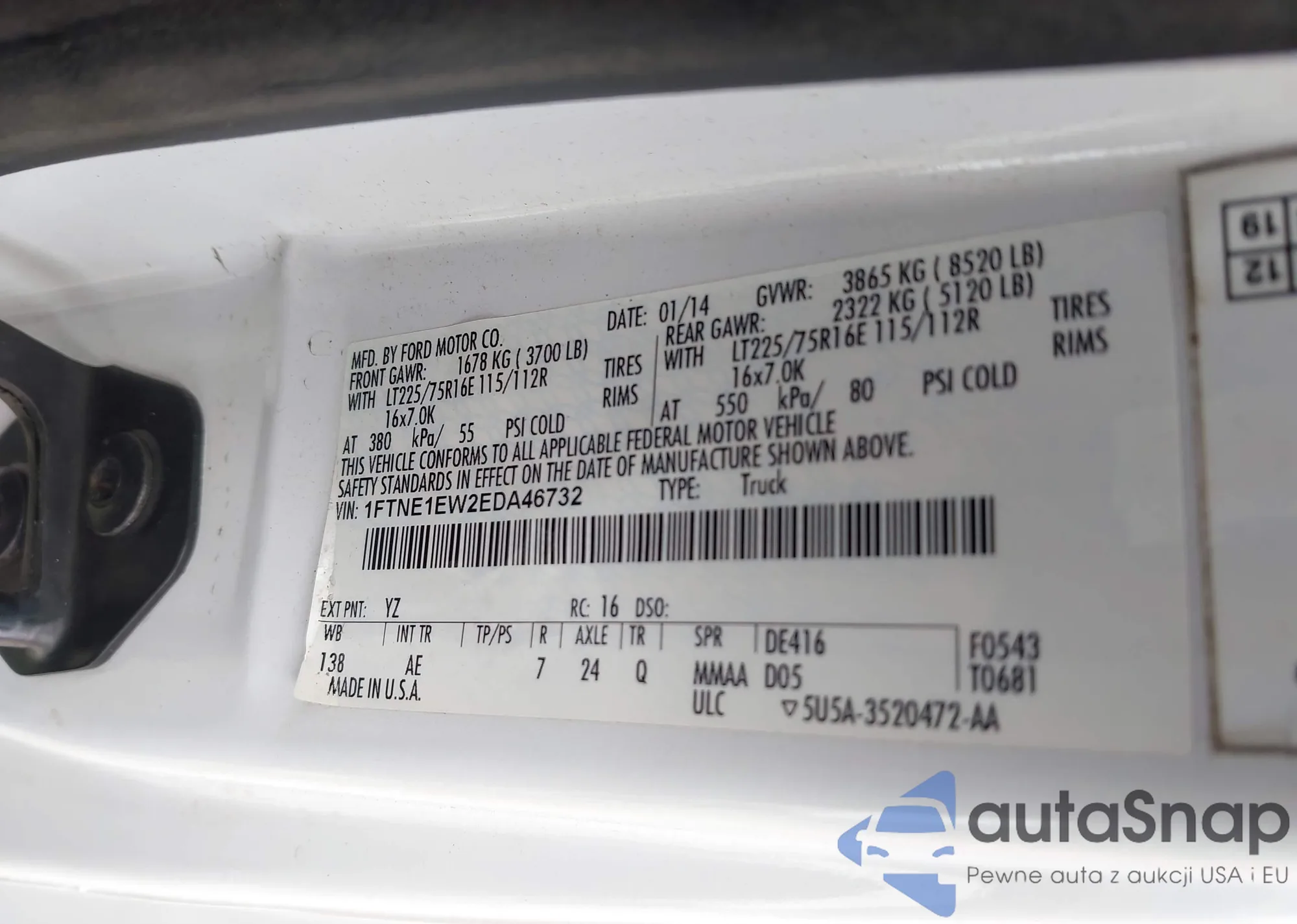 LOT: 43731772 VIN: 1FTNE1EW2EDA46732
