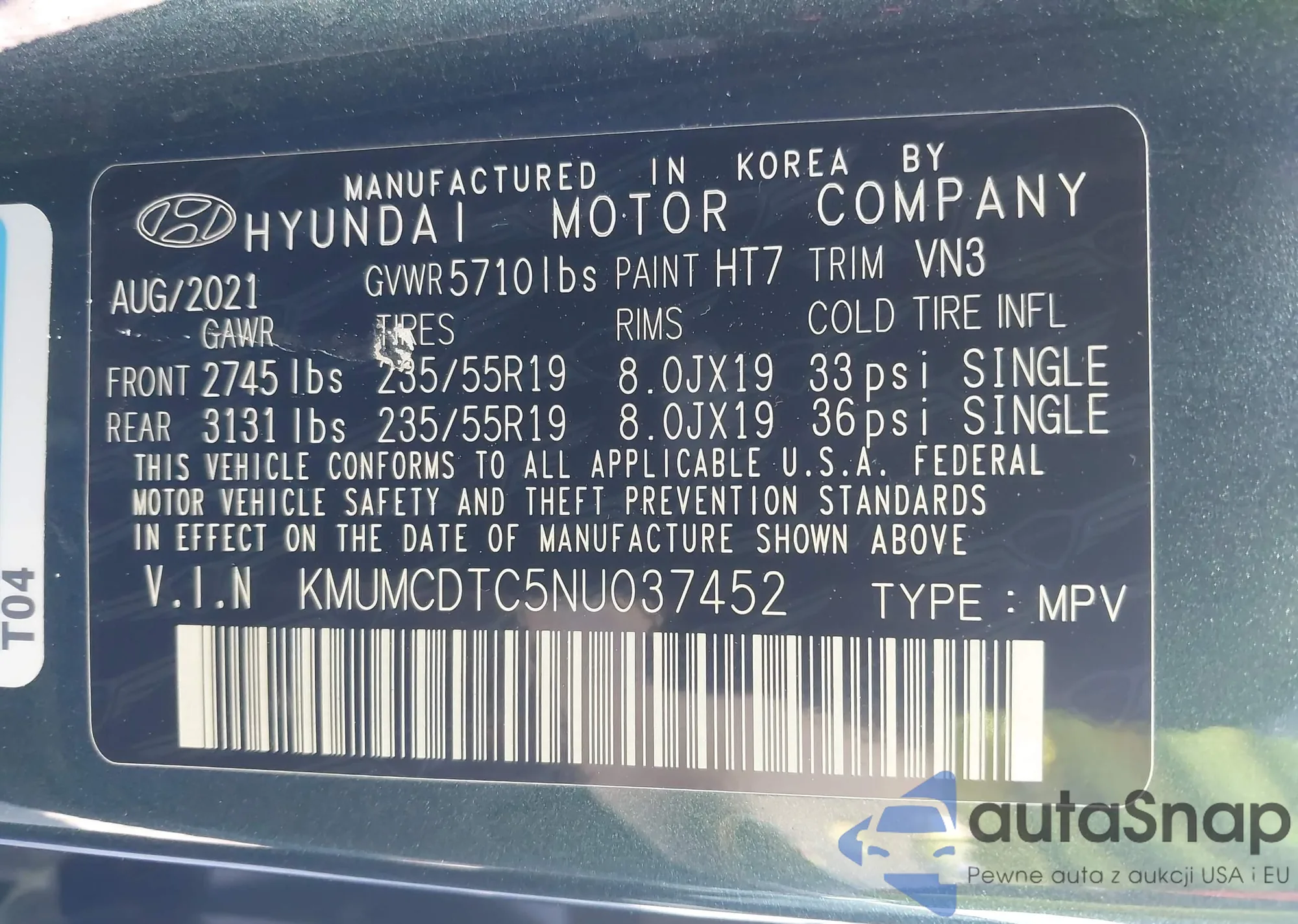 • VIN KMUMCDTC5NU037452