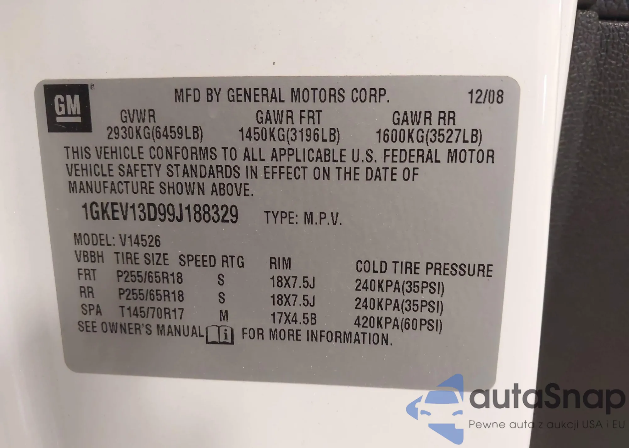 • VIN 1GKEV13D99J188329