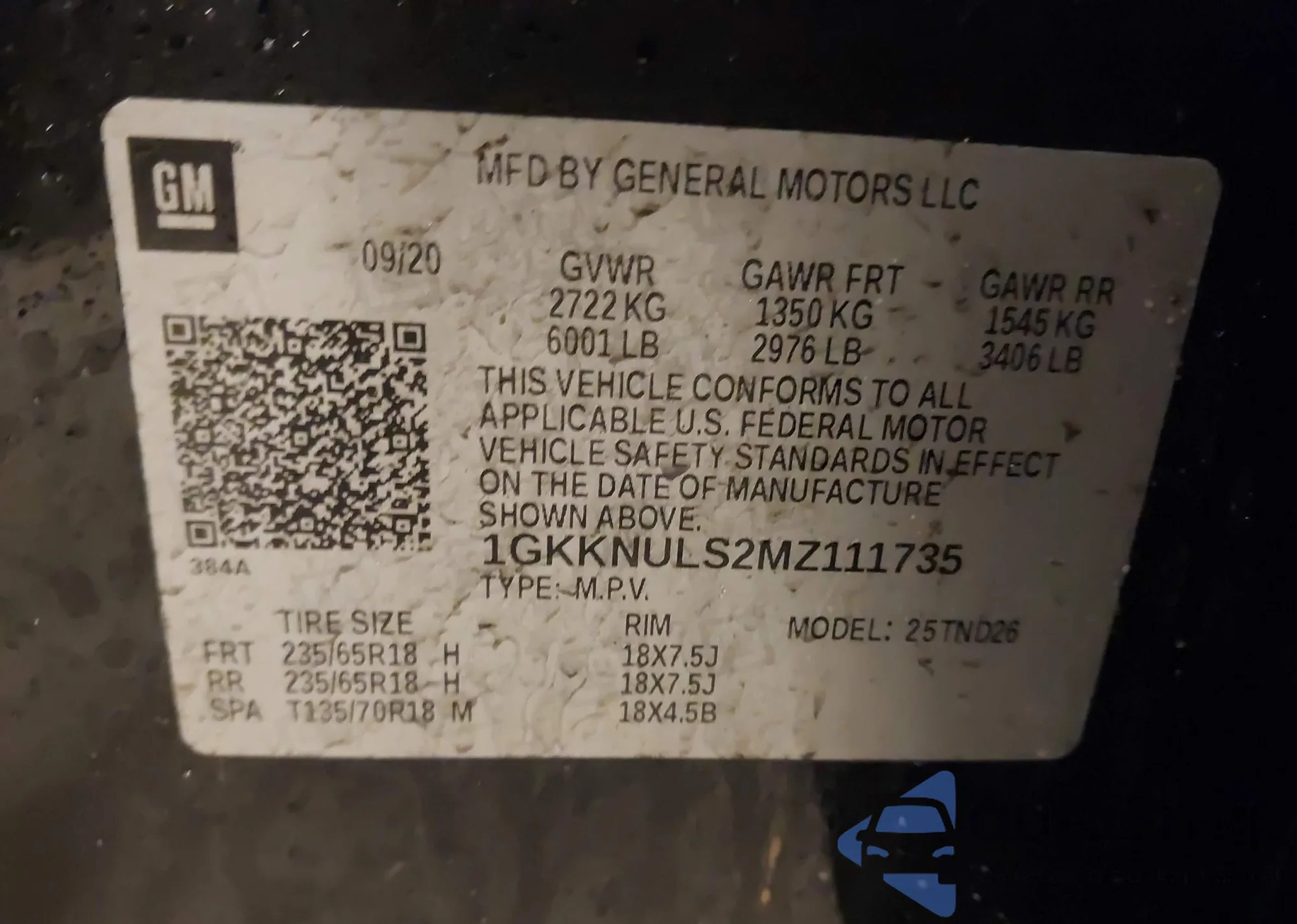 • VIN 1GKKNULS2MZ111735