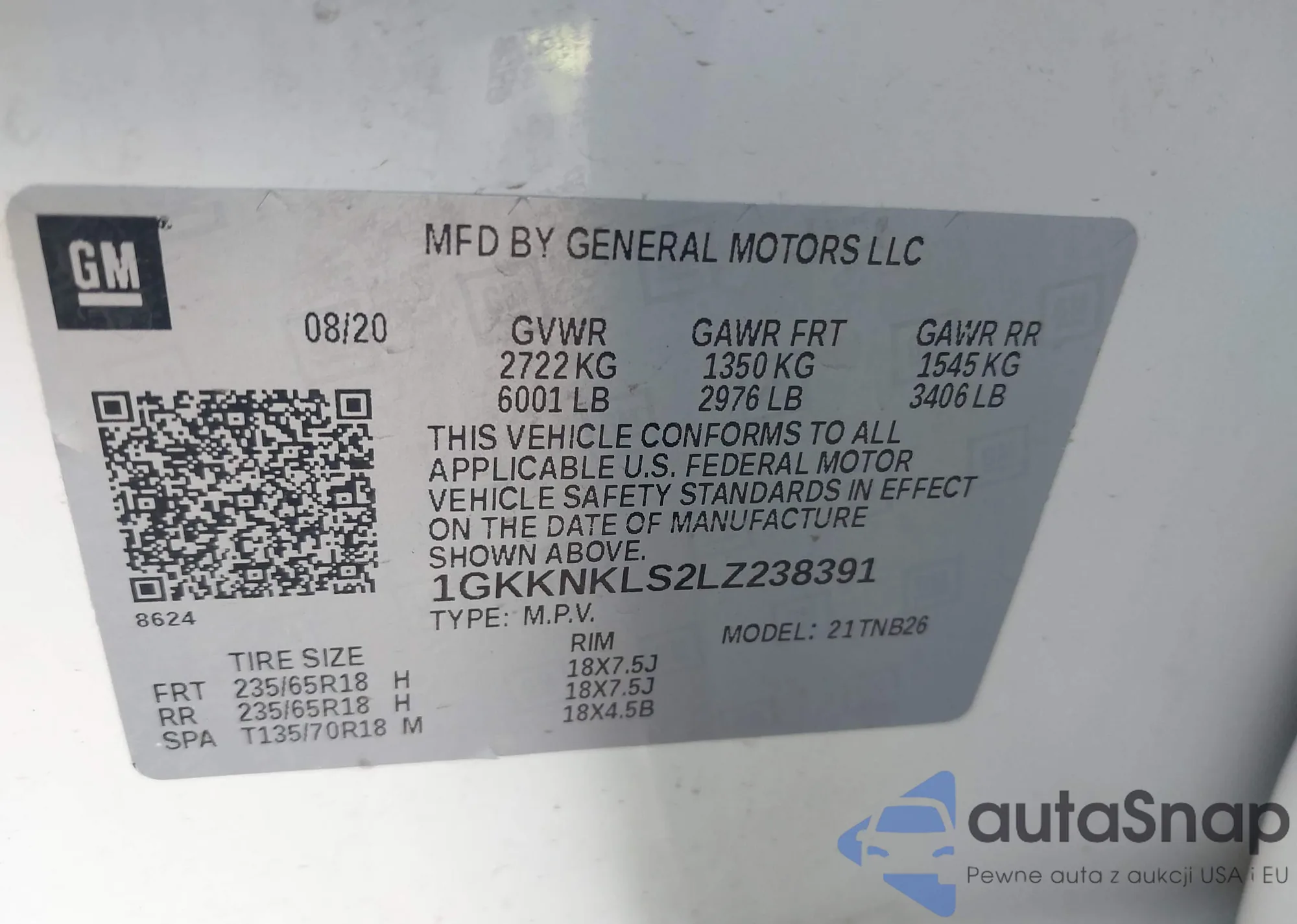 LOT: 44012731 VIN: 1GKKNKLS2LZ238391