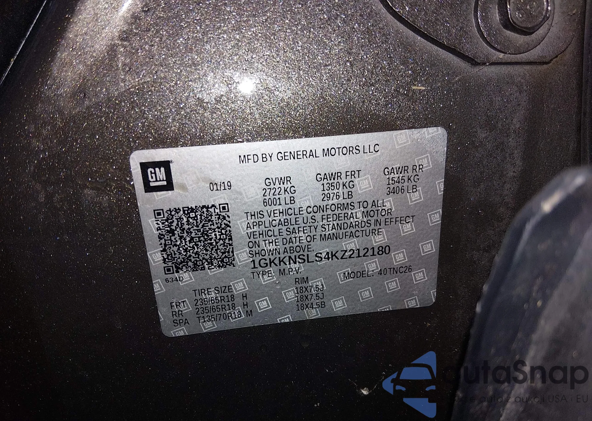 • VIN 1GKKNXLS5JZ128719