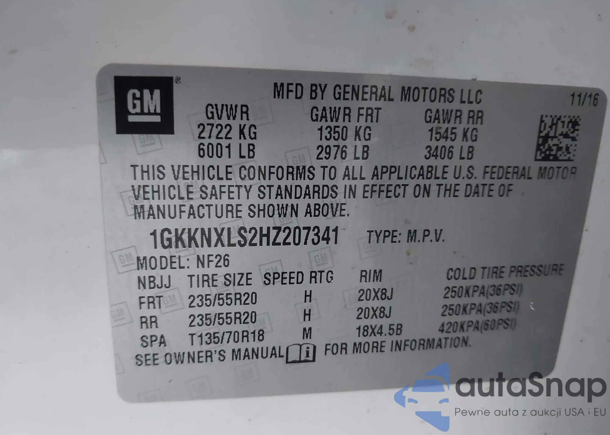 • VIN 1GKKNXLS2HZ207341