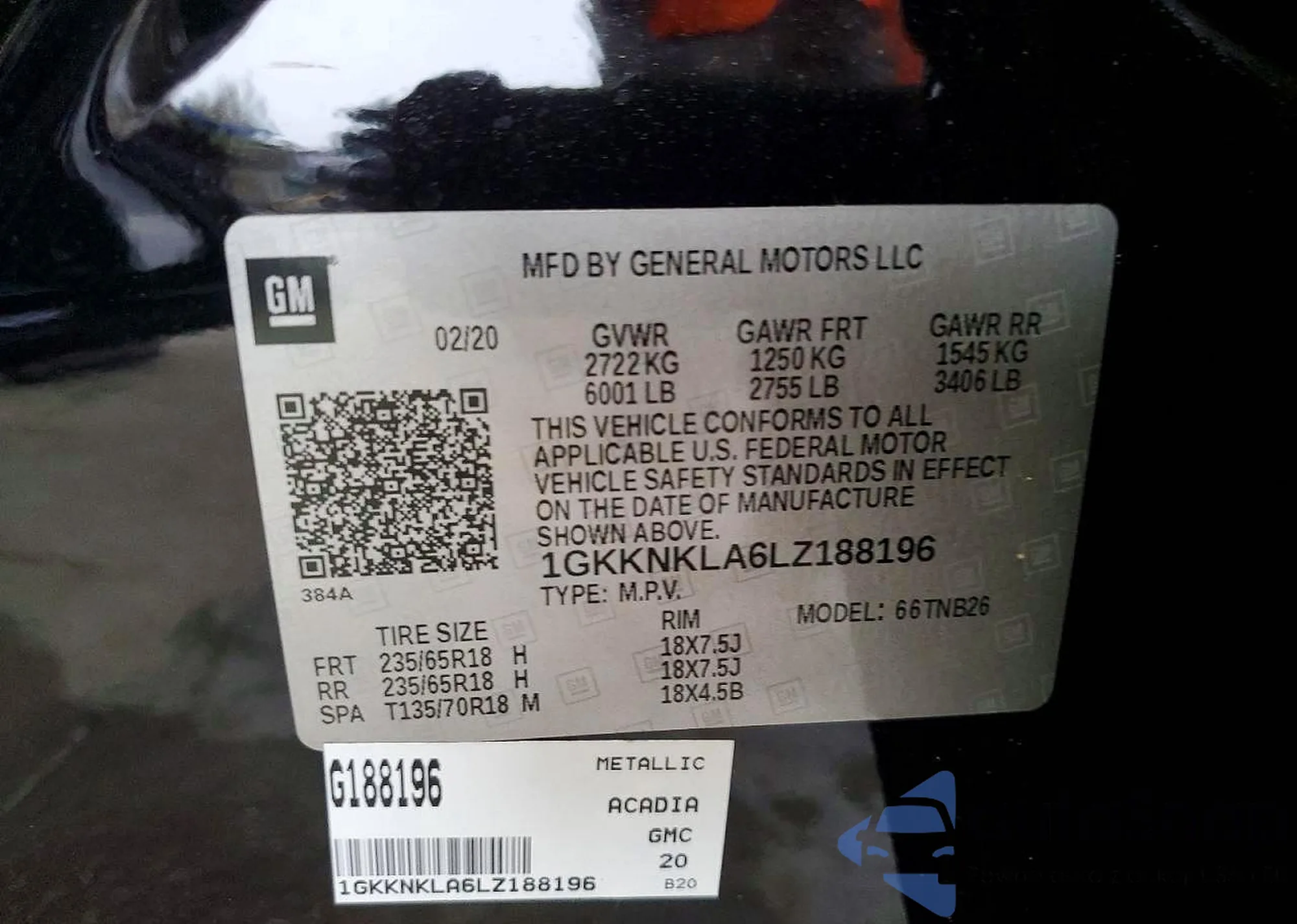 LOT: 76290035 VIN: 1GKKNKLA6LZ188196