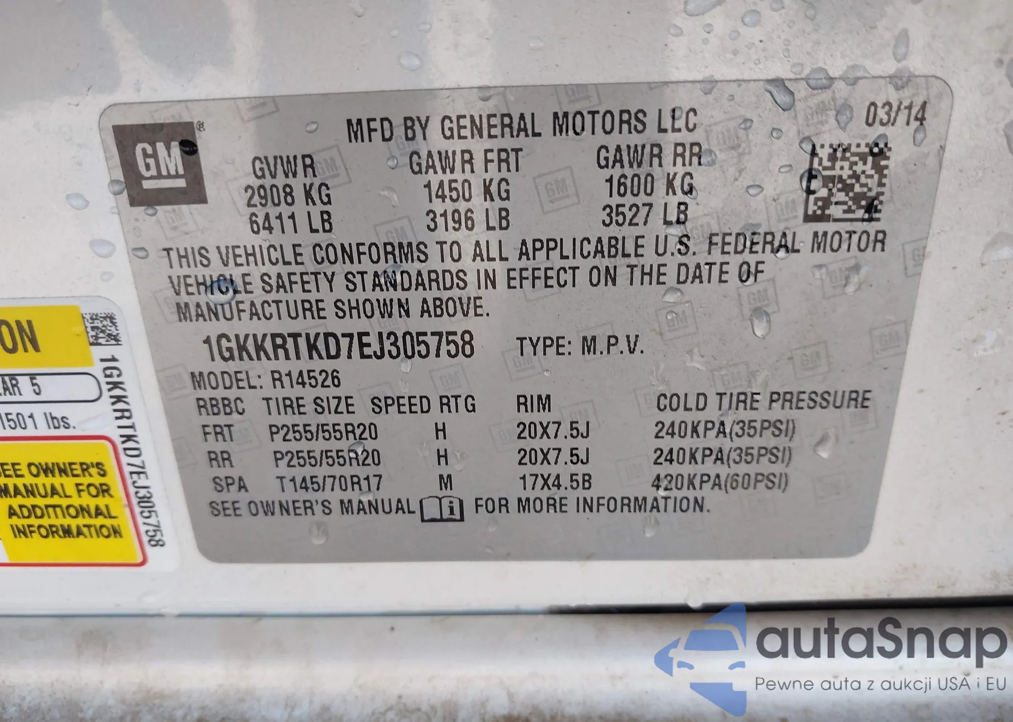 • VIN 1GKKRTKD7EJ305758