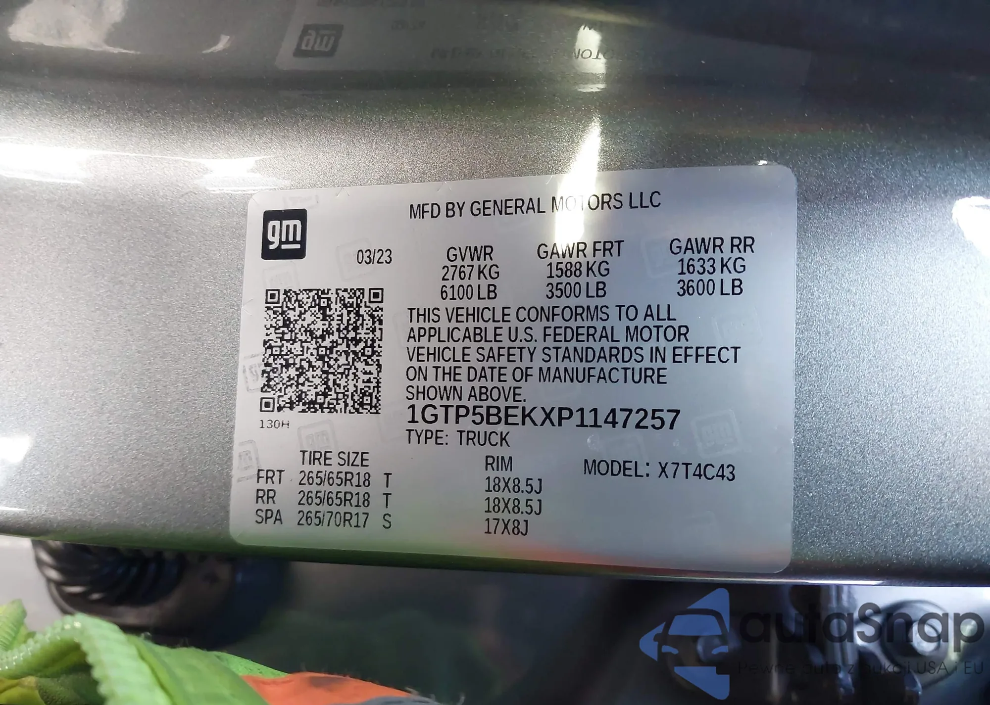 • VIN 1GTP5BEKXP1147257