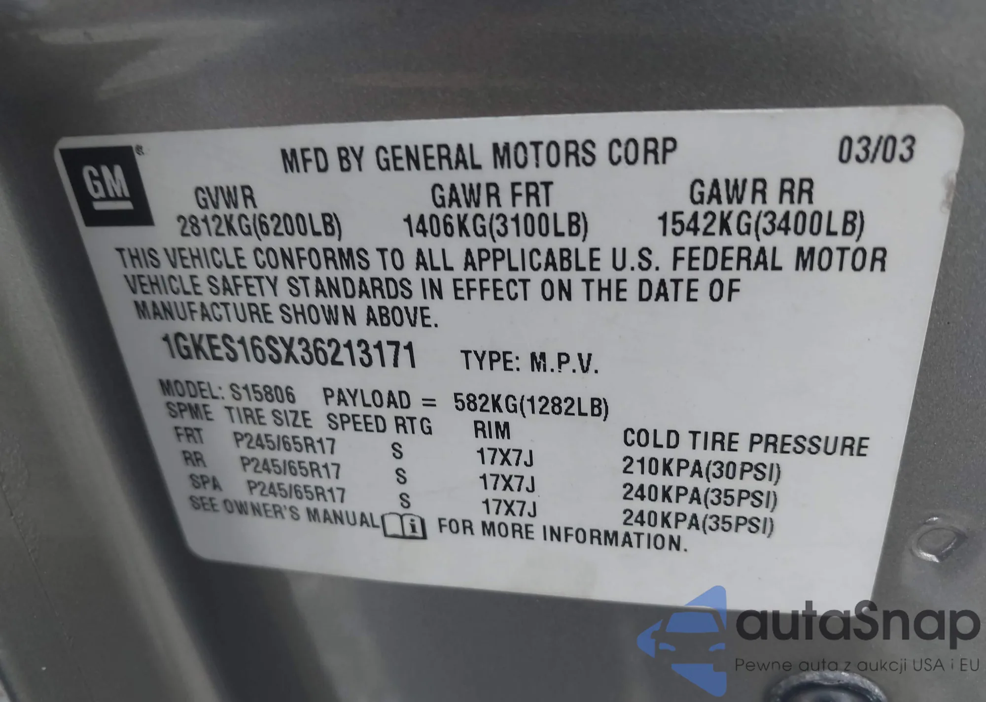 • VIN 1GKES16SX36213171