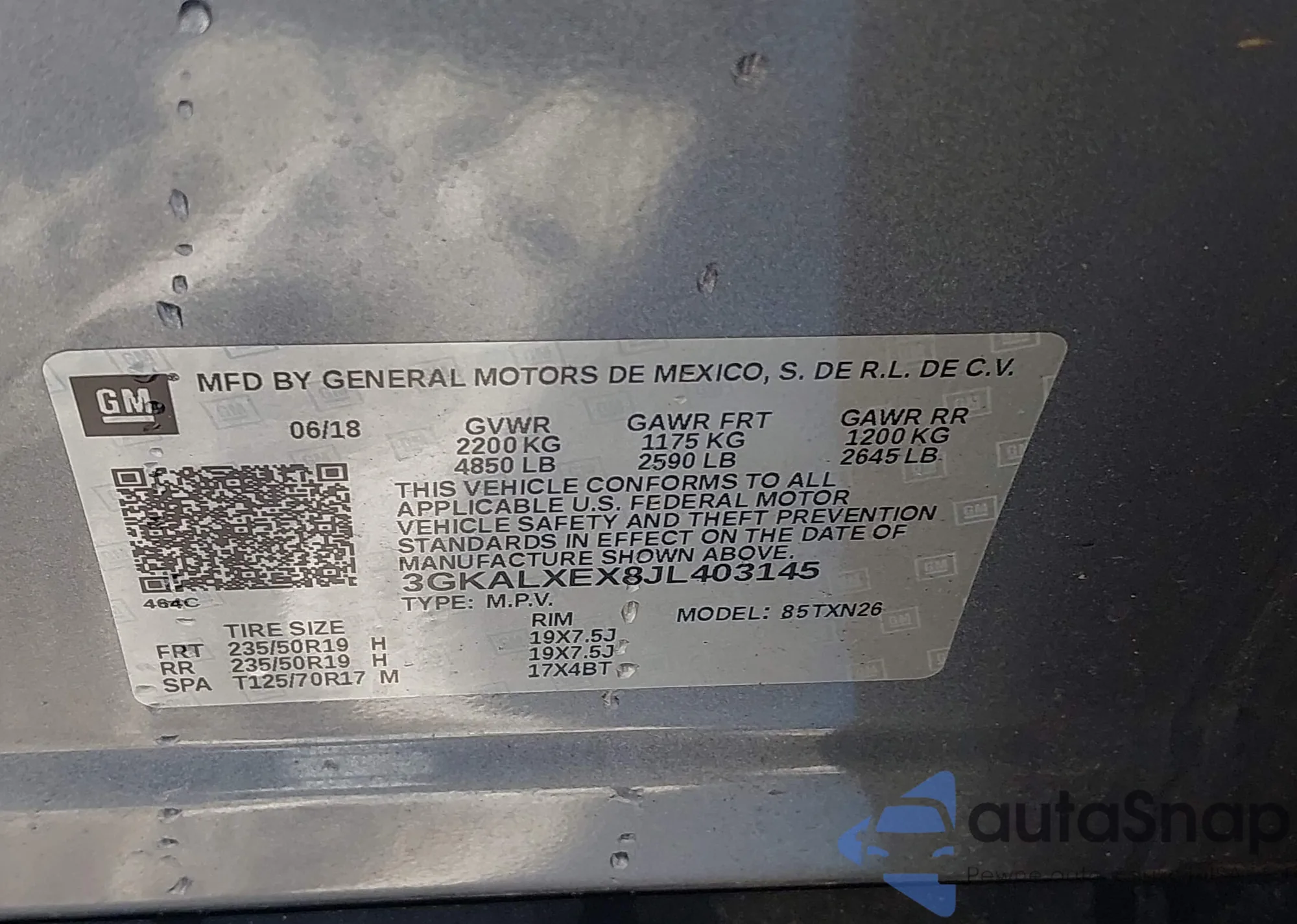 • VIN 3GKALXEX8JL403145