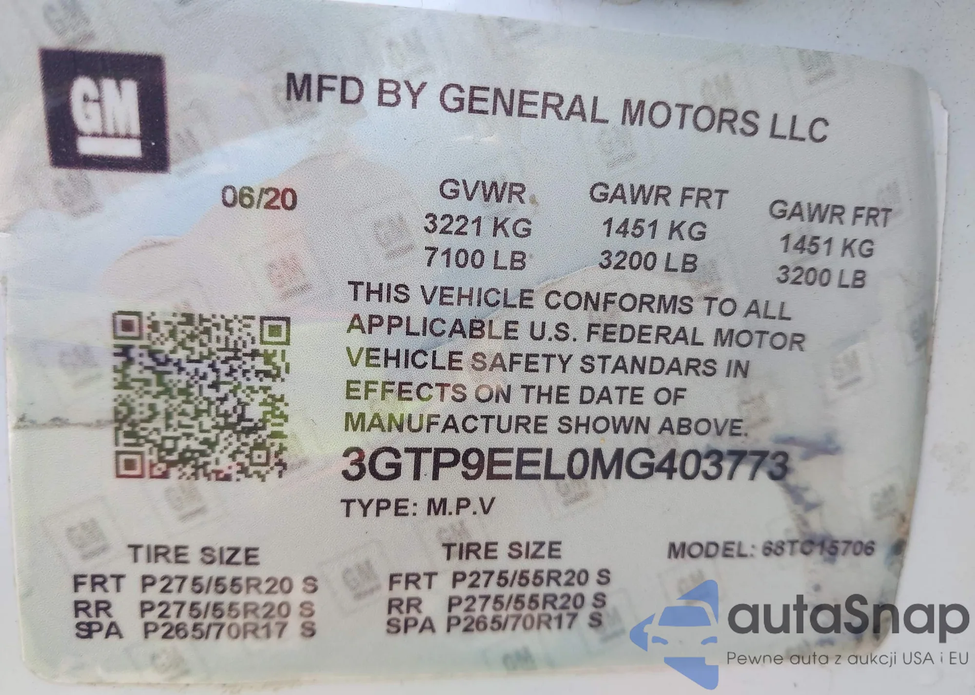 LOT: 43650168 VIN: 3GTP9EED3MG387531