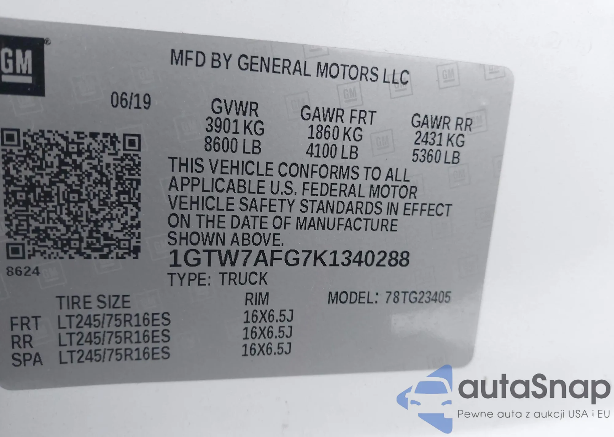 • VIN 1GTW7AFG7K1340288
