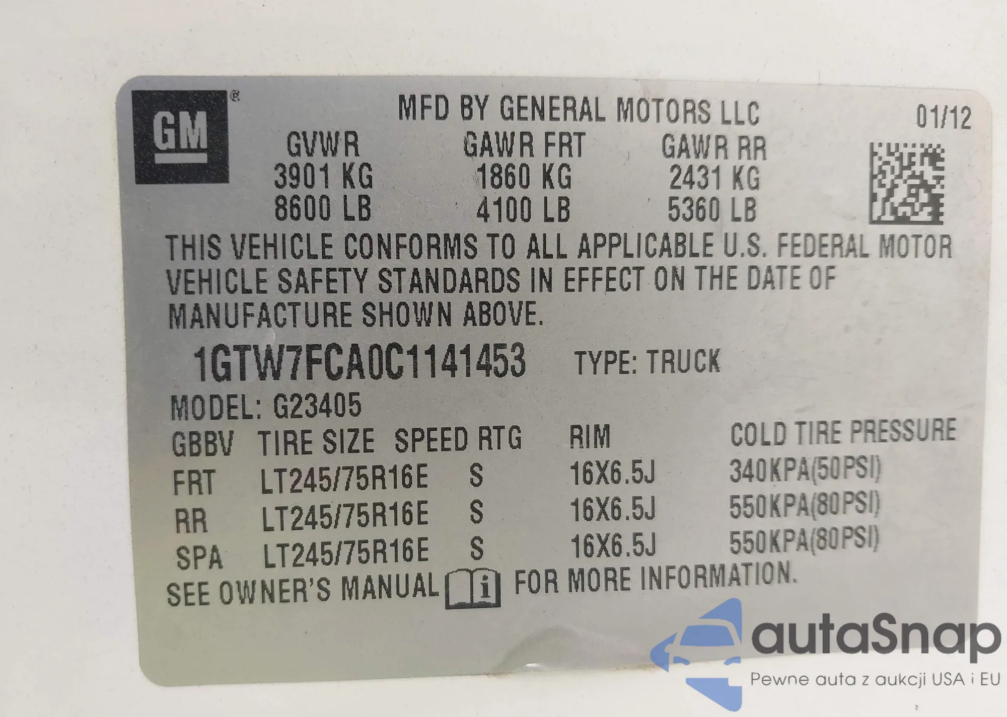 • VIN 1GTW7FCA0C1141453