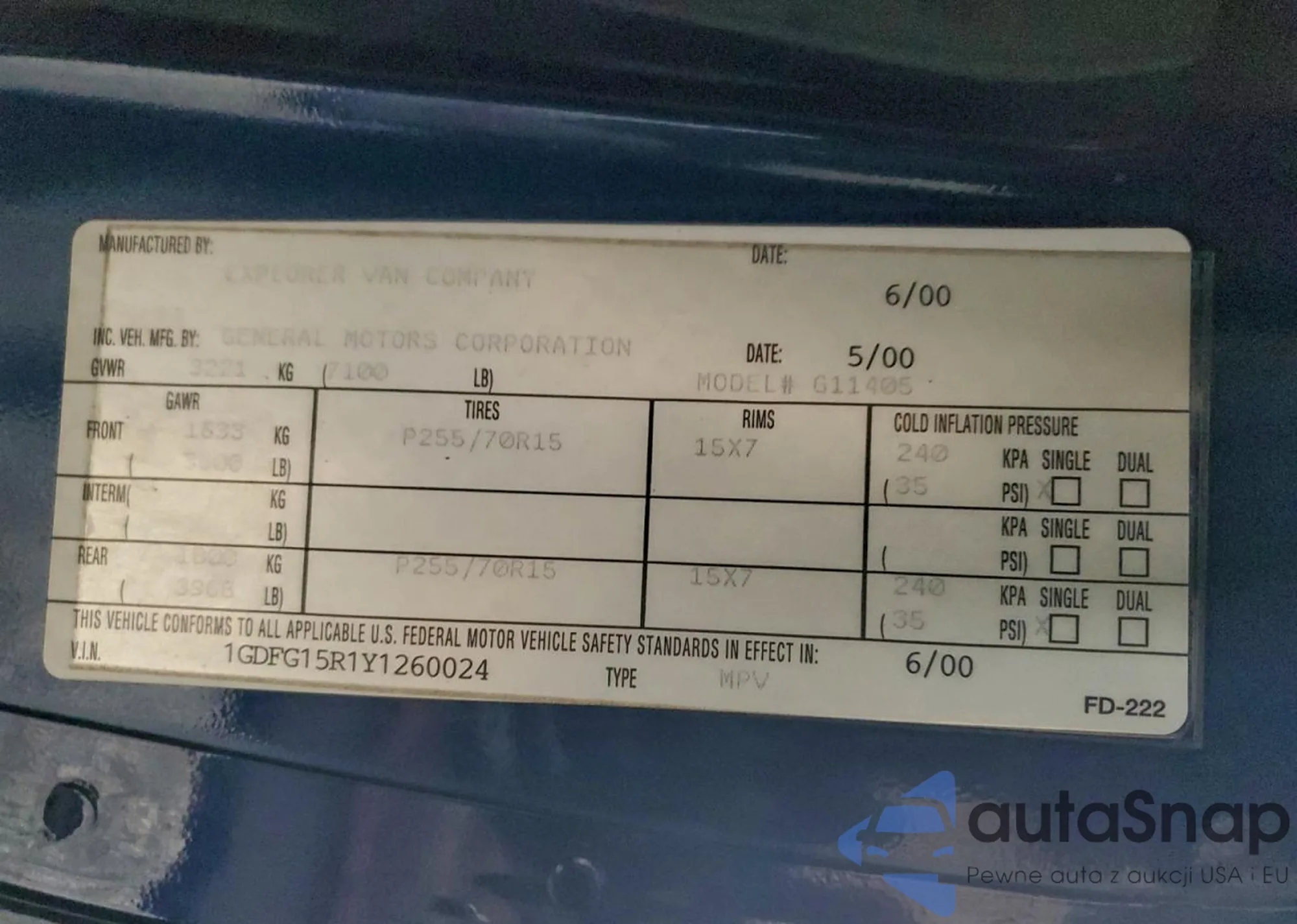 • VIN 1GTZ7GF15M1266948