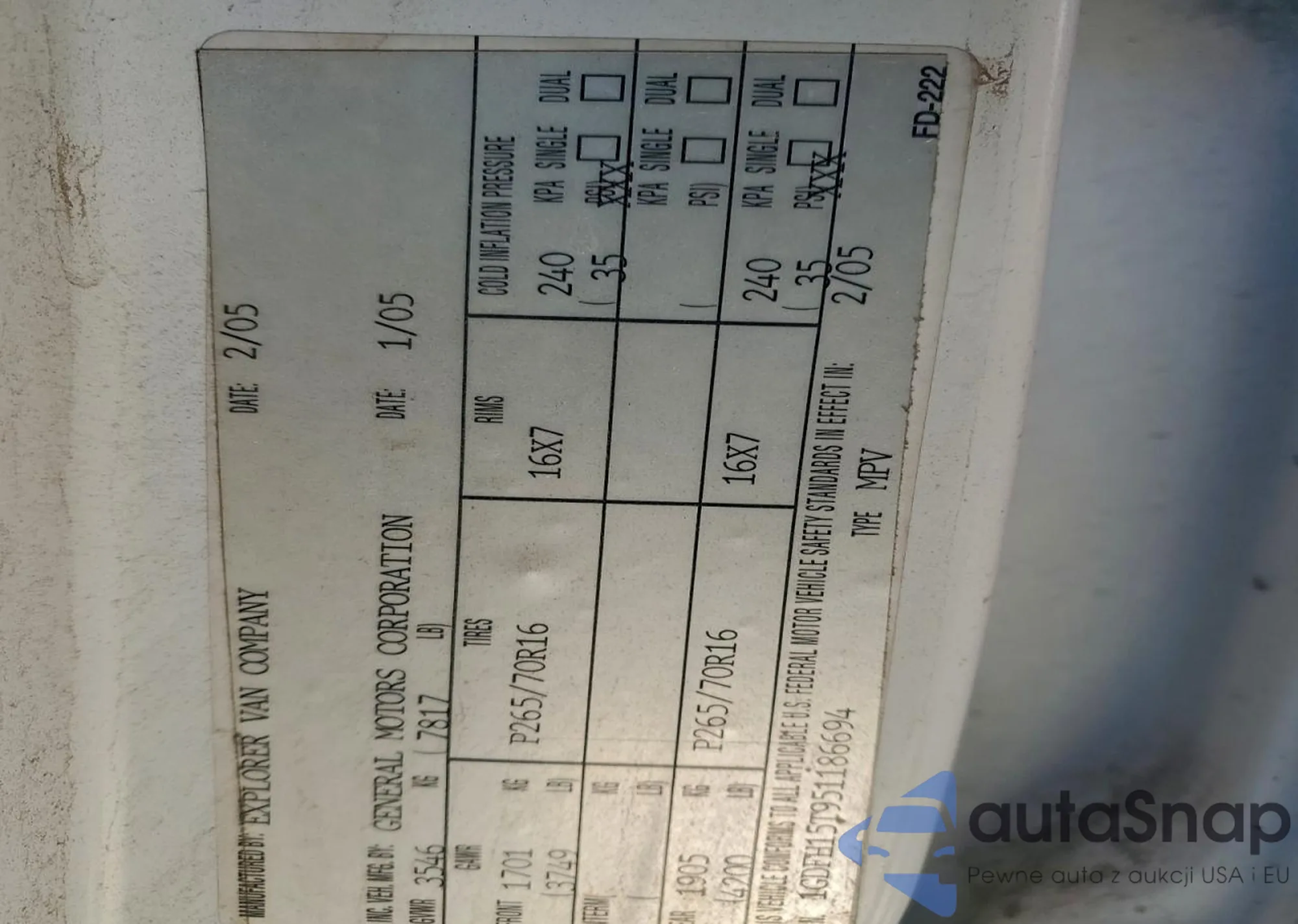 • VIN 1GTGG25UX51110217