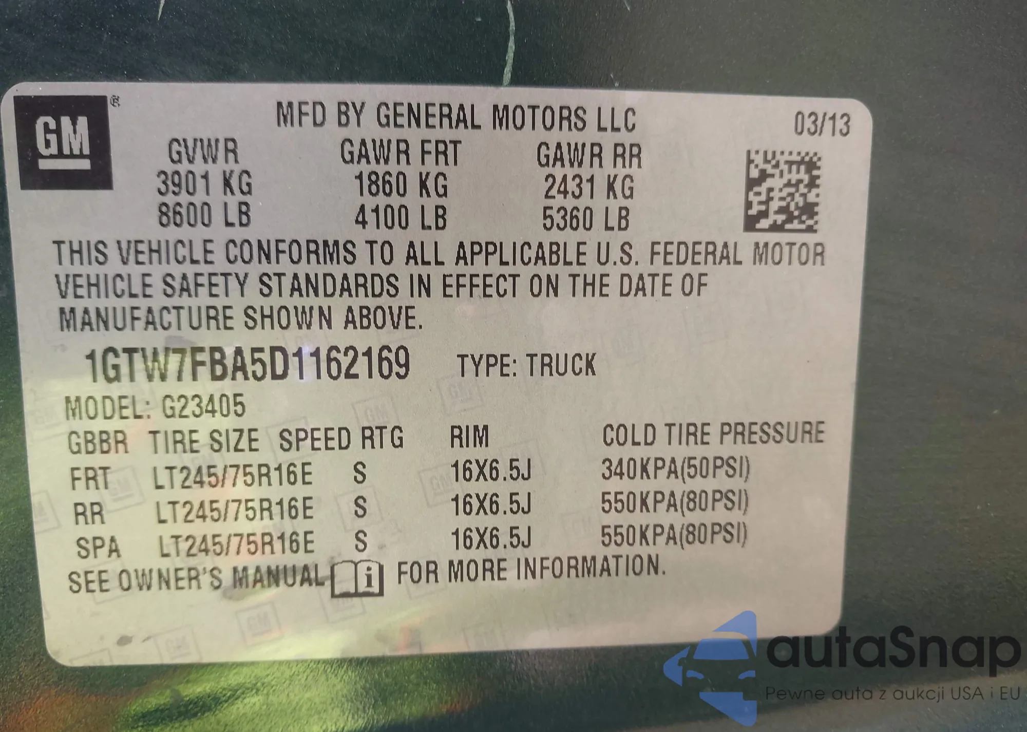 • VIN 1GTW7FBA5D1162169
