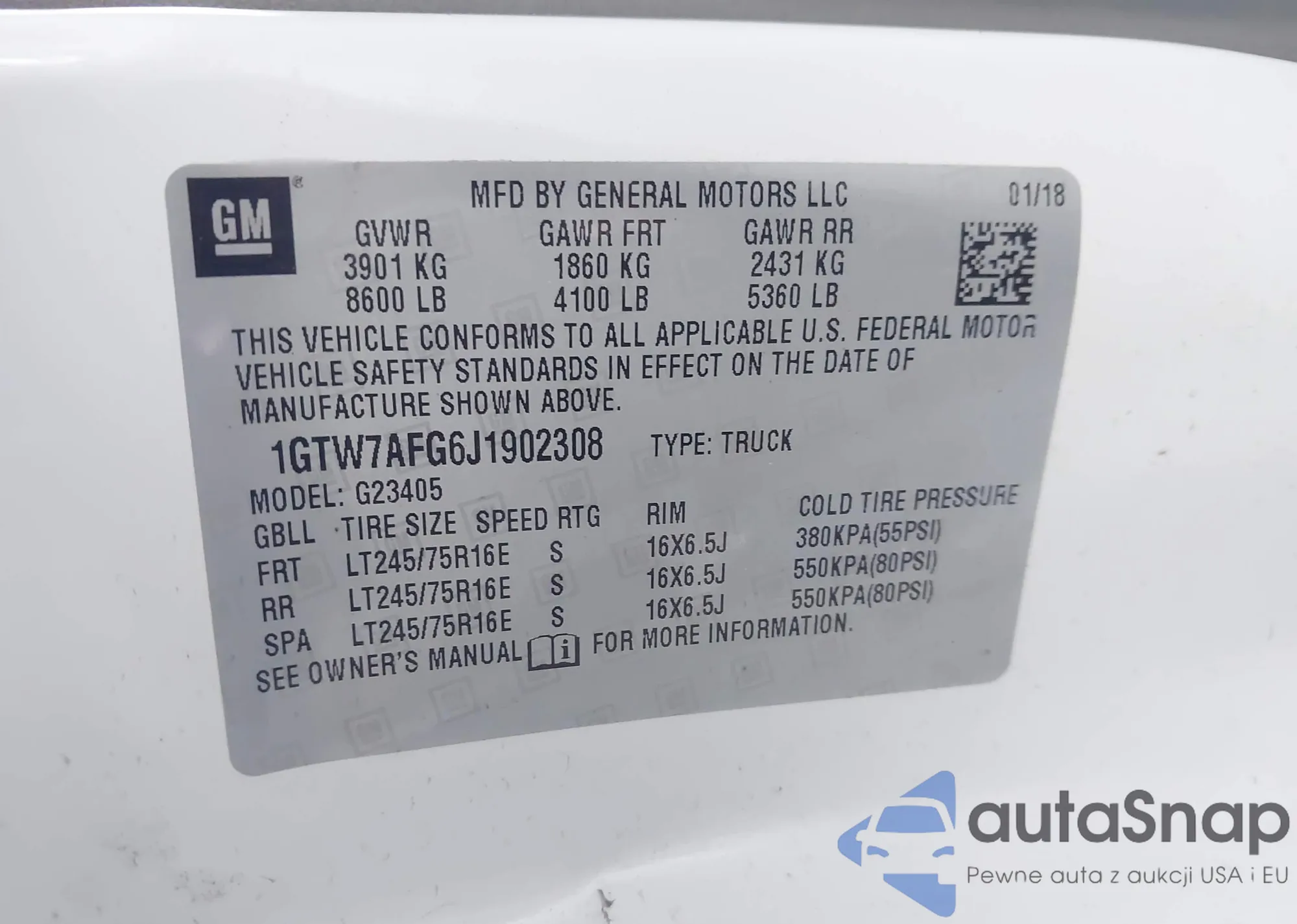• VIN 1GTW7AFG6J1902308