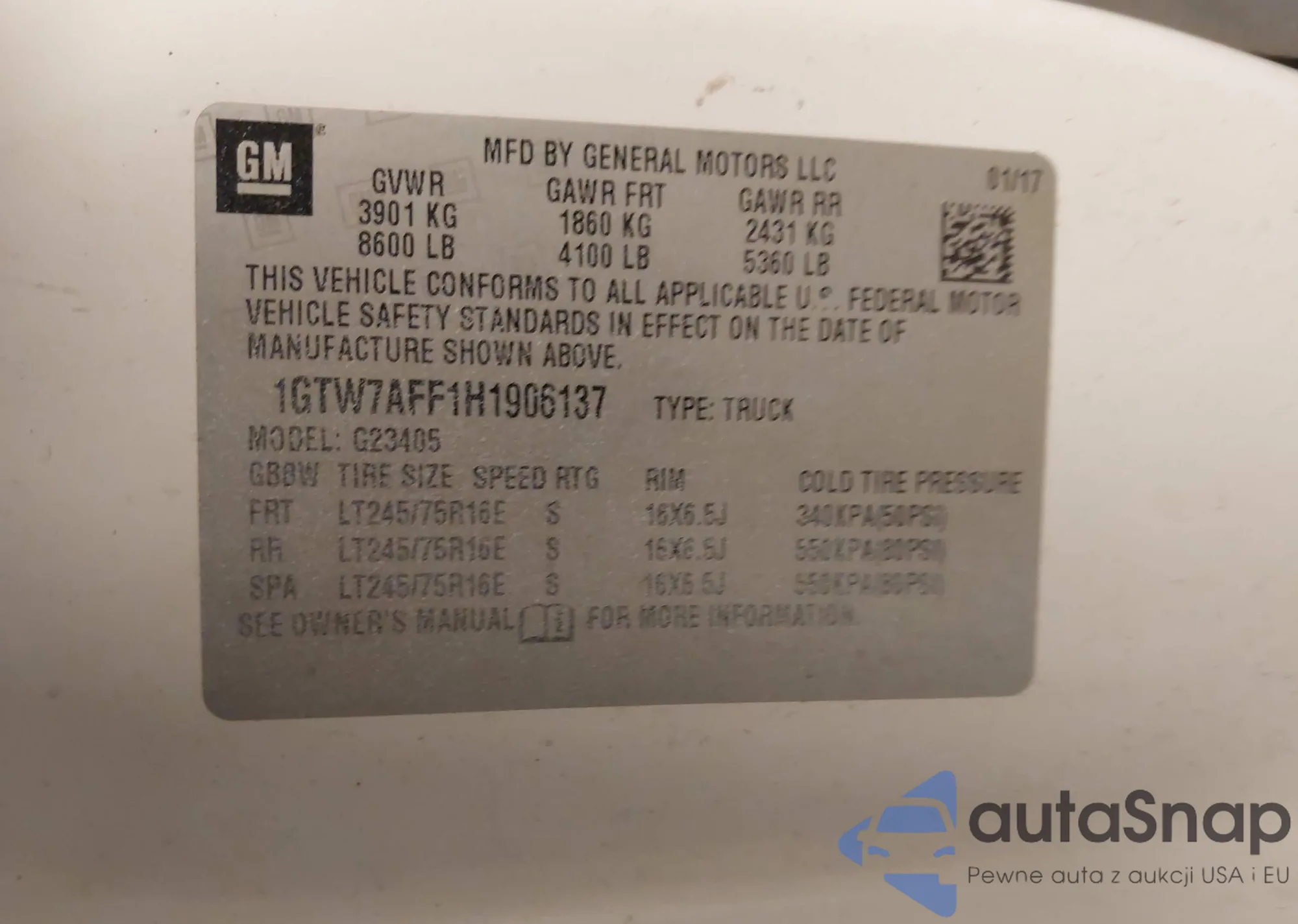 • VIN 1GTW7AFF1H1906137