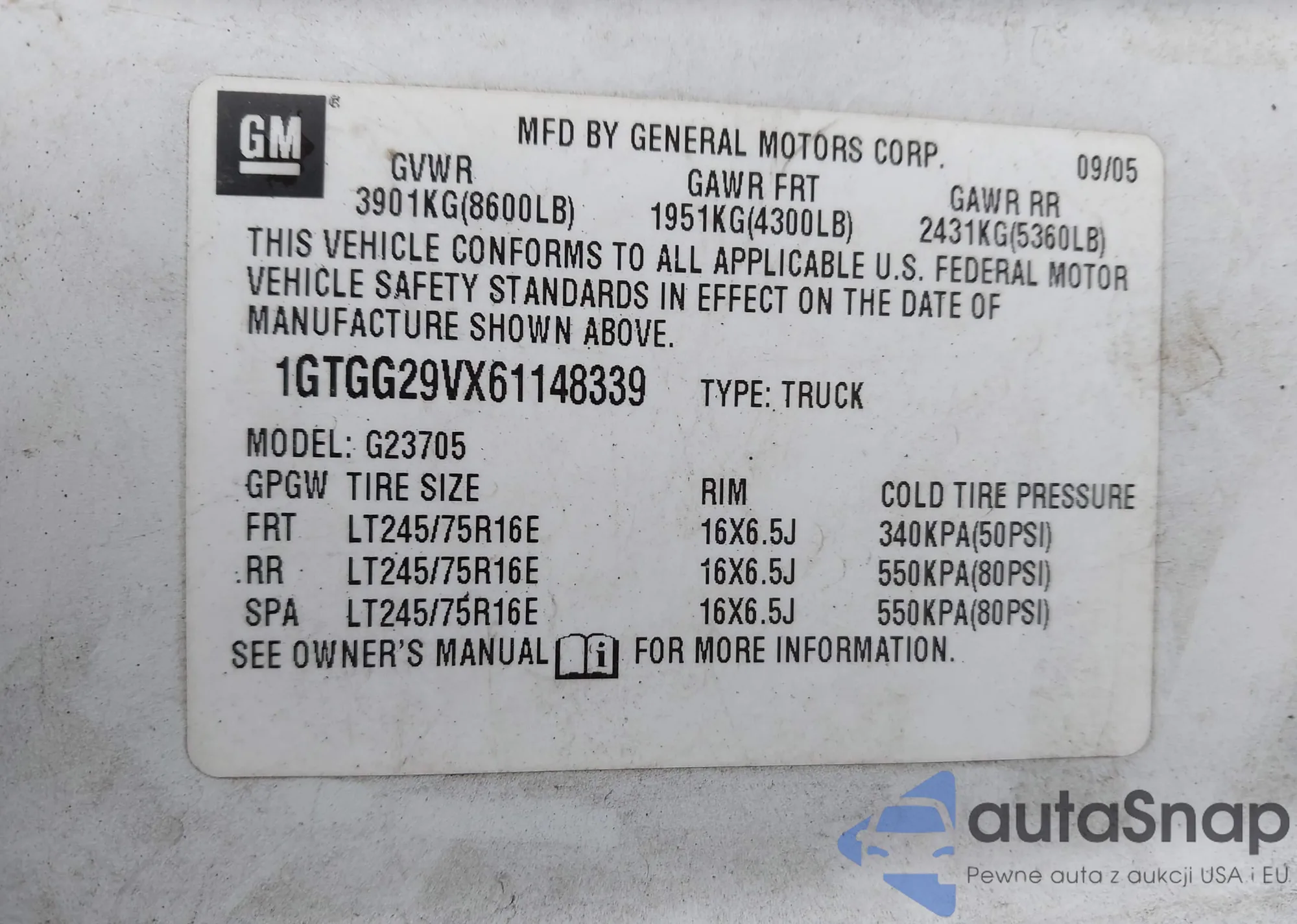 • VIN 1GTGG29VX61148339