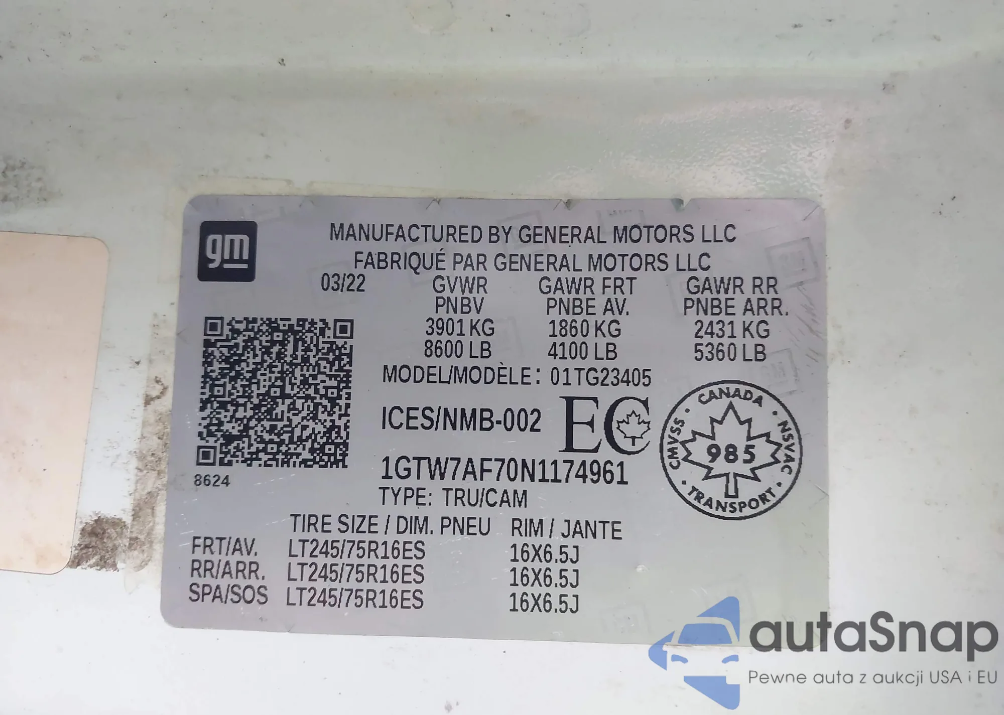 • VIN 1GTW7AF70N1174961