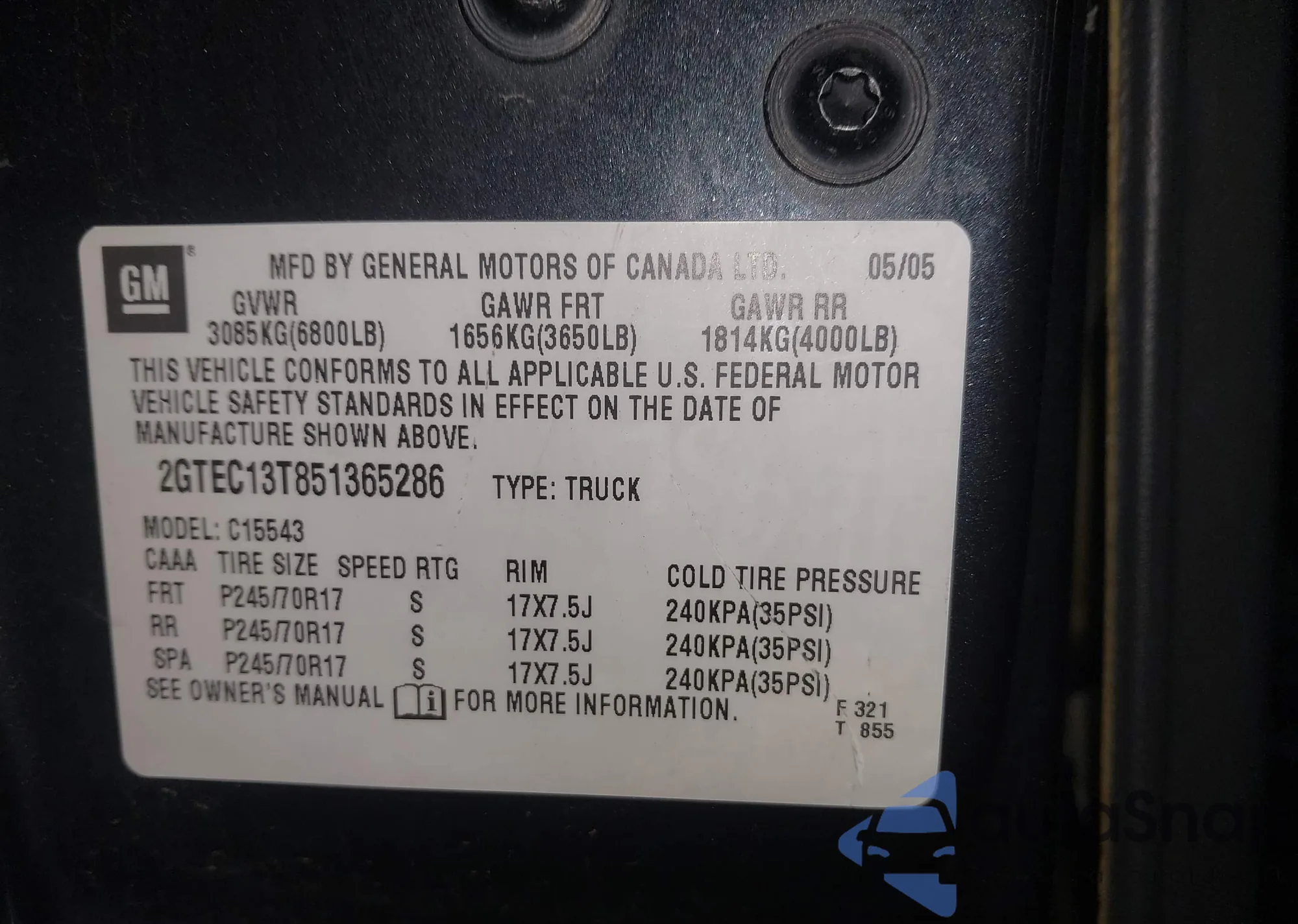 • VIN 2GTEC13T851365286