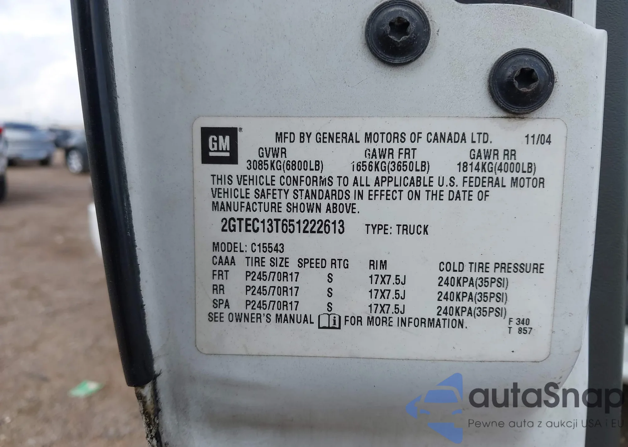 • VIN 2GTEC13T651222613
