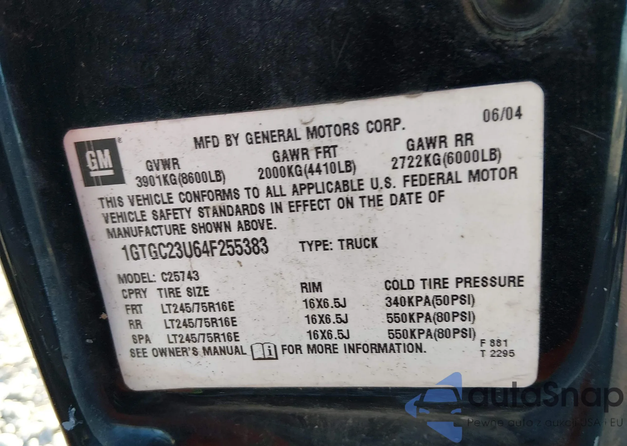 • VIN 1GTGC23U64F255383