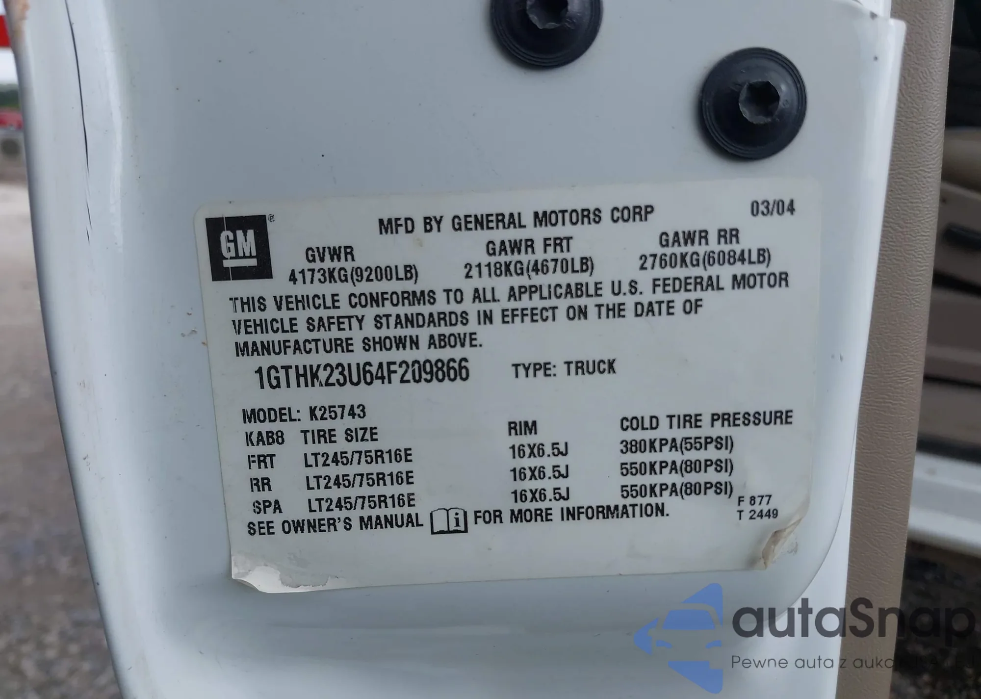 • VIN 1GTHK23U64F209866