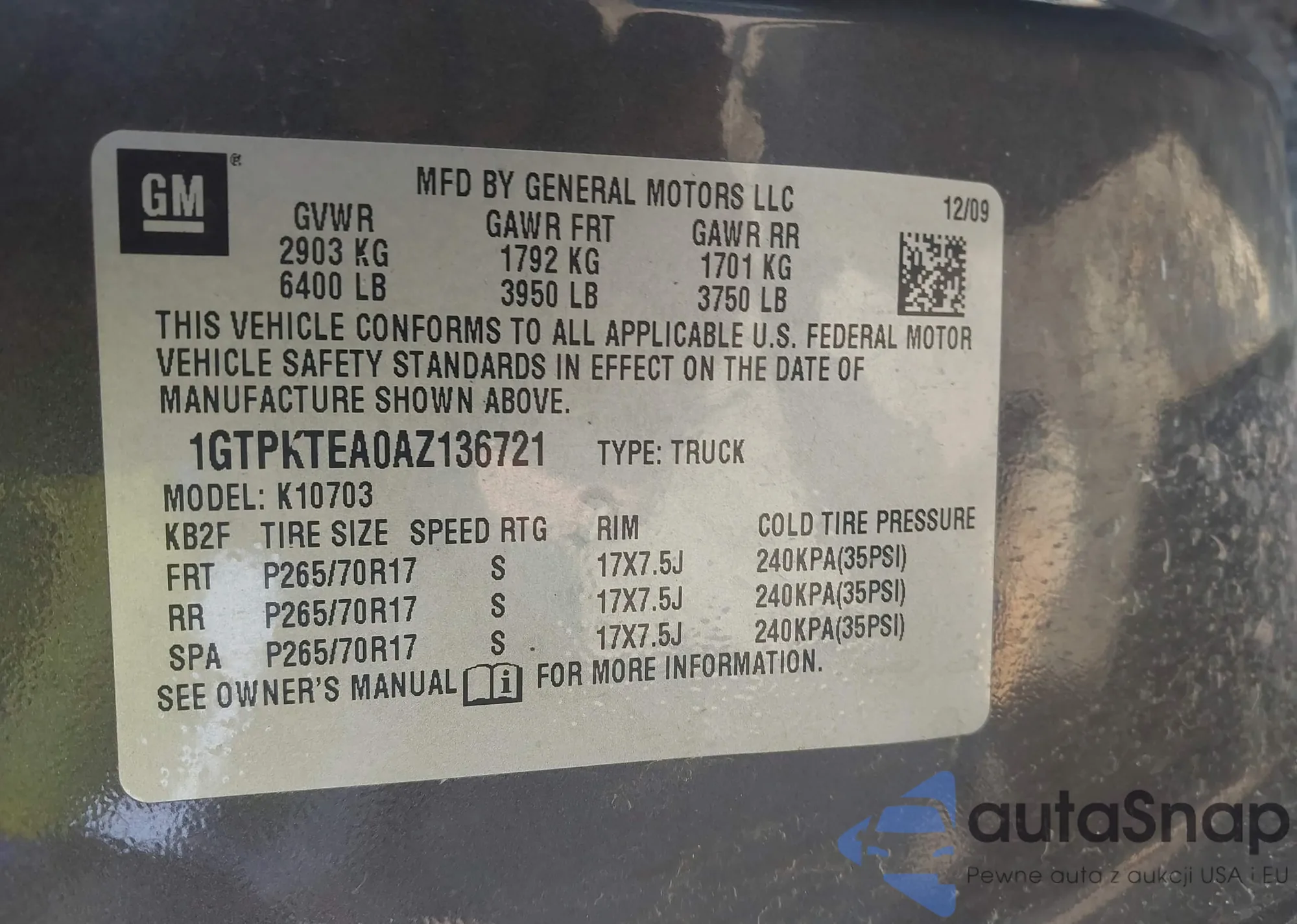 • VIN 1GTPKTEA0AZ136721