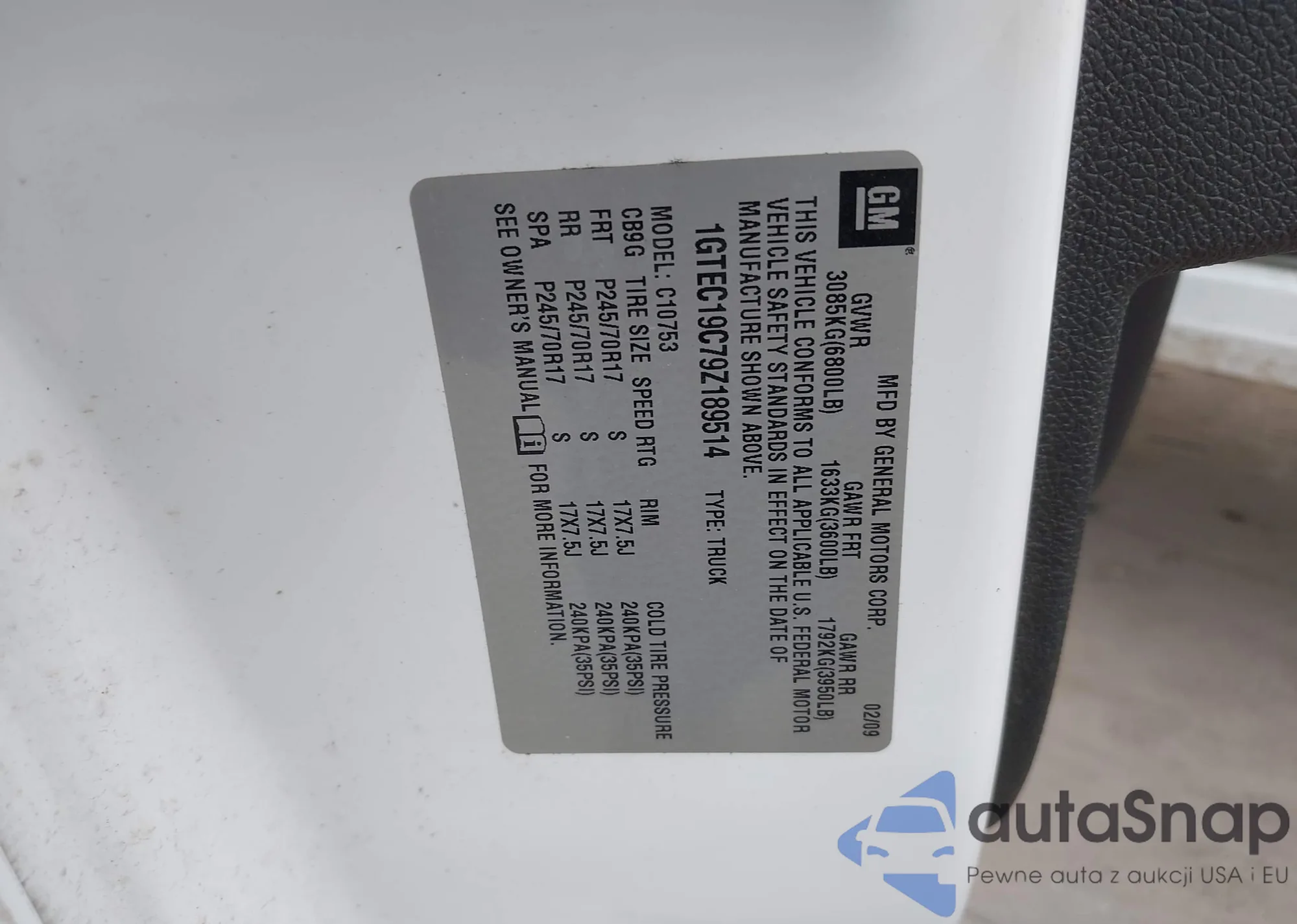 • VIN 1GTEC19C79Z189514