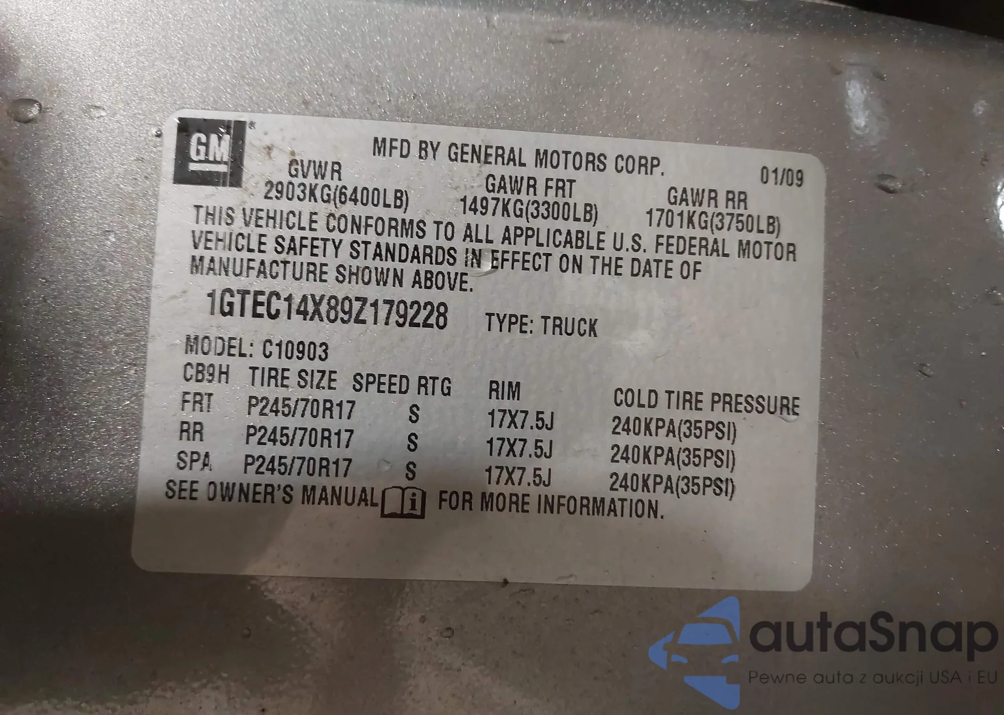 • VIN 1GTEC14X89Z179228