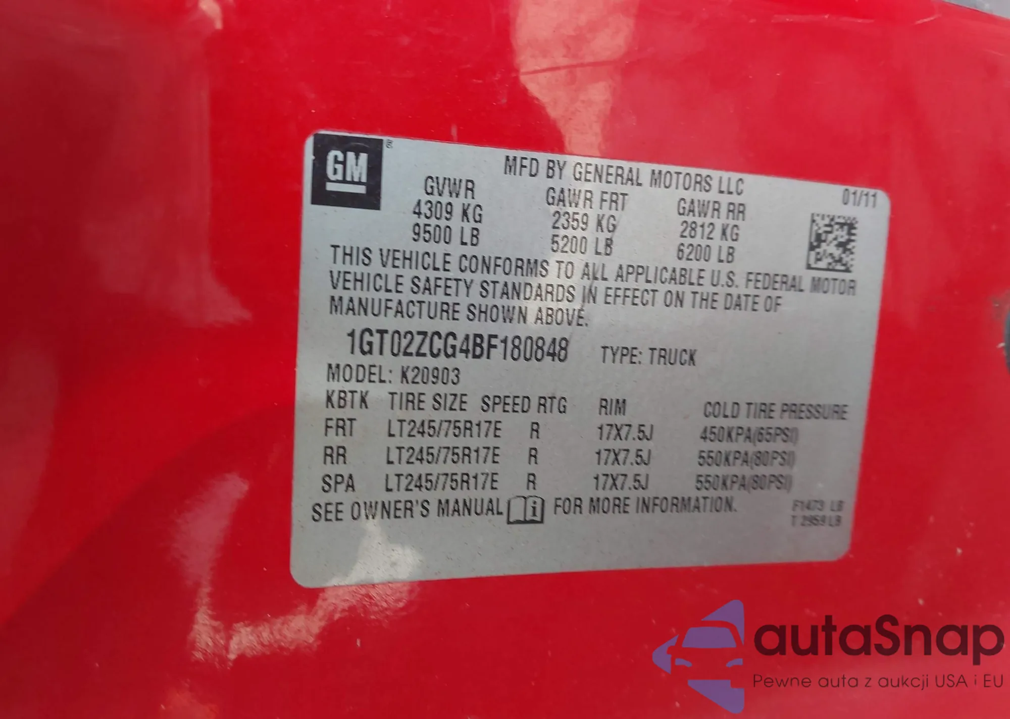 • VIN 1GT02ZCG4BF180848