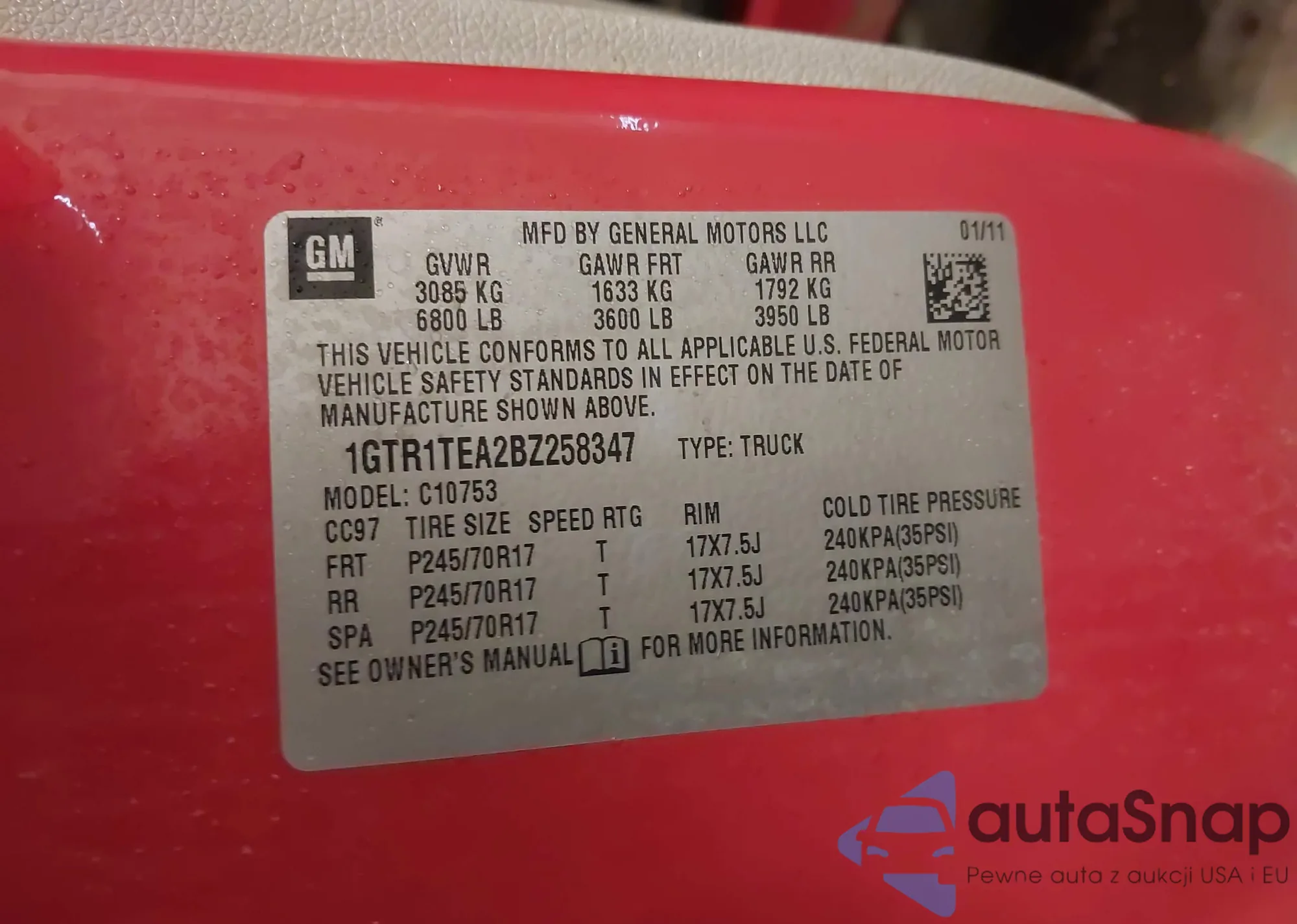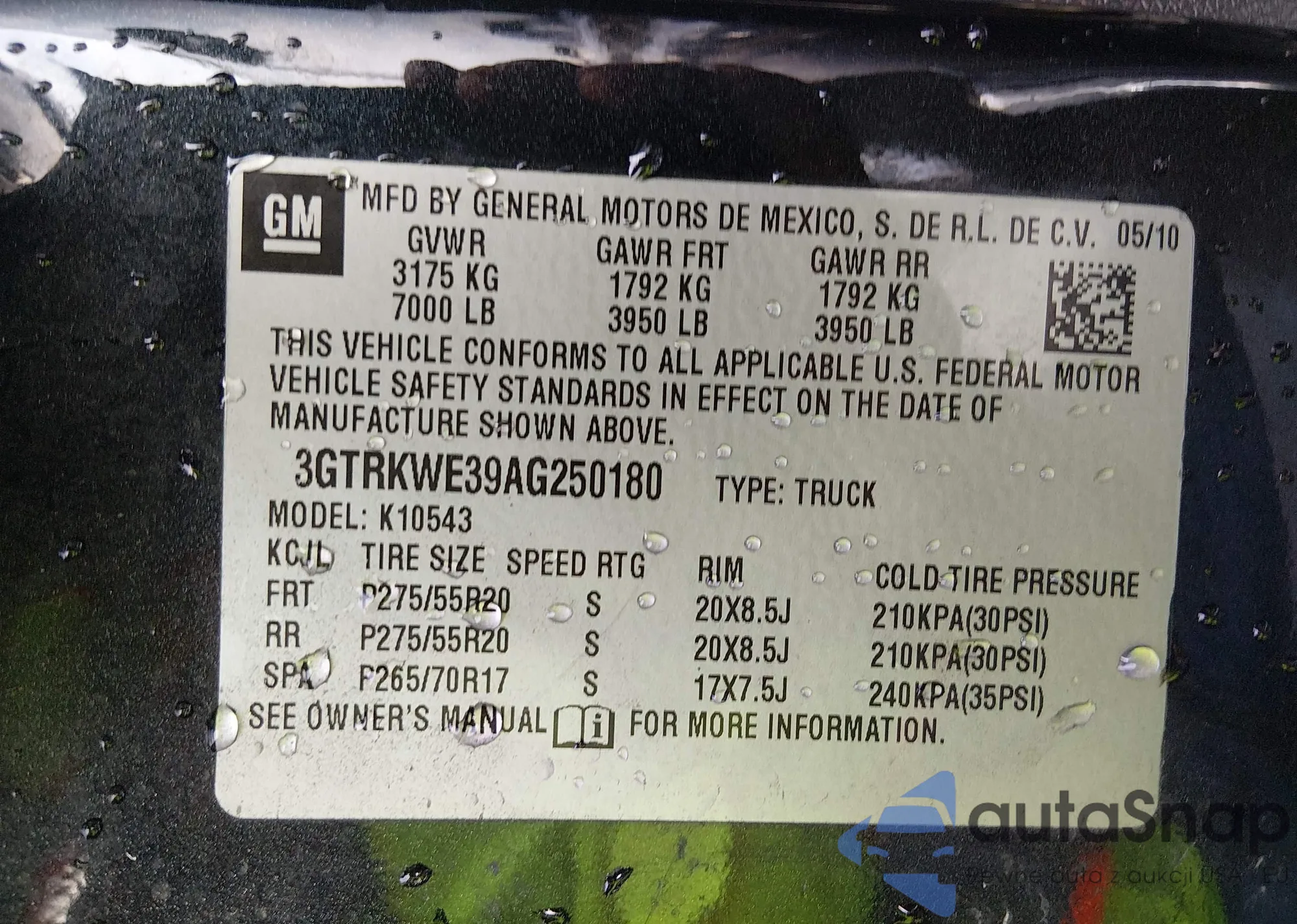 • VIN 3GTRKWE39AG250180