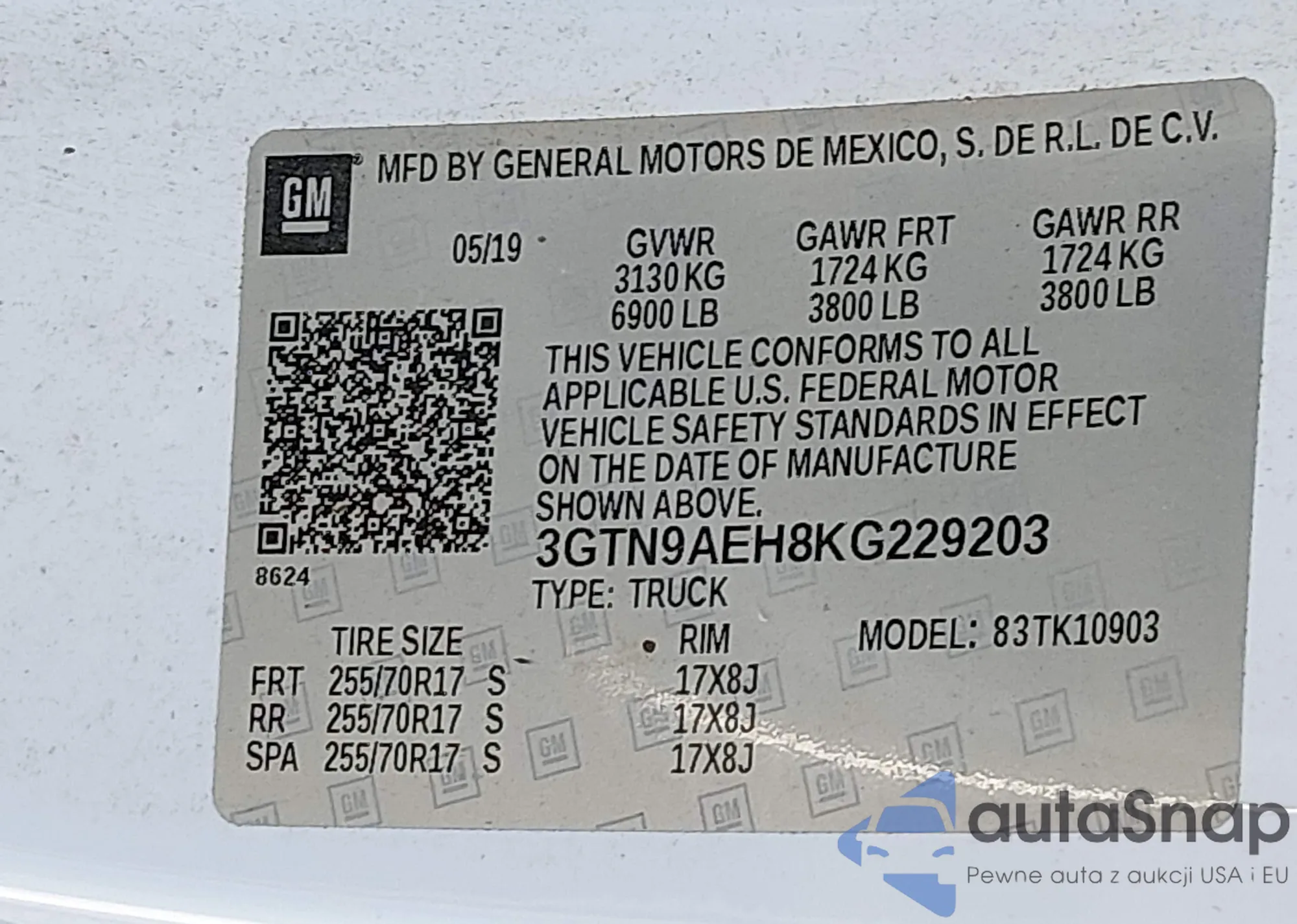 LOT: 46359376 VIN: 3GTP8DED8MG336359