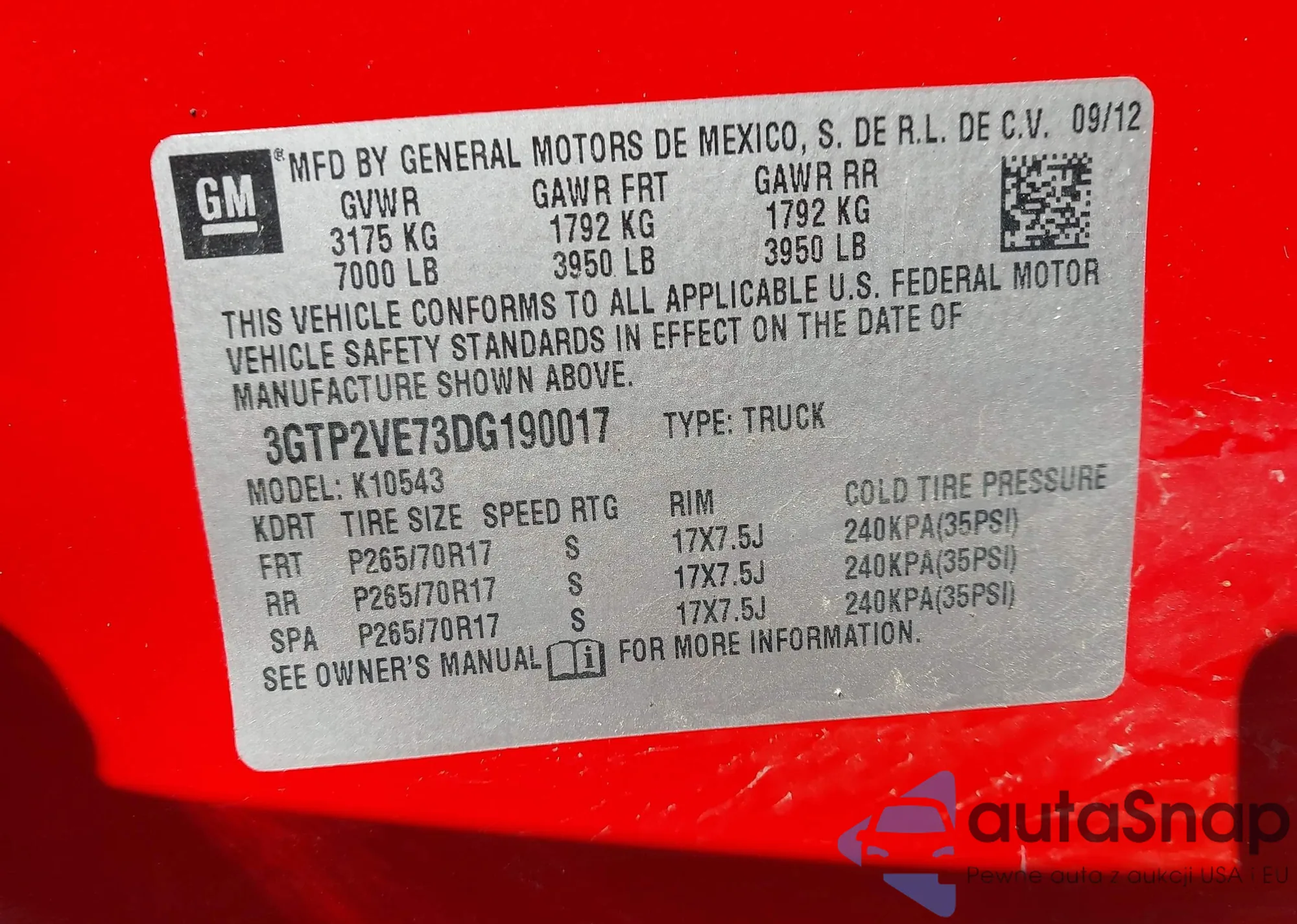 • VIN 3GTRKVE30AG128978