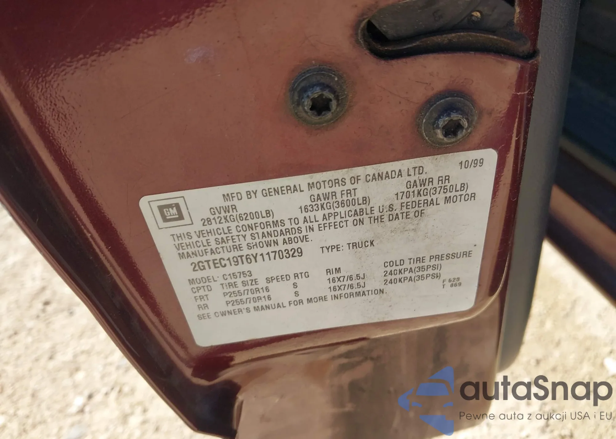 • VIN 2GTEC19T6Y1170329